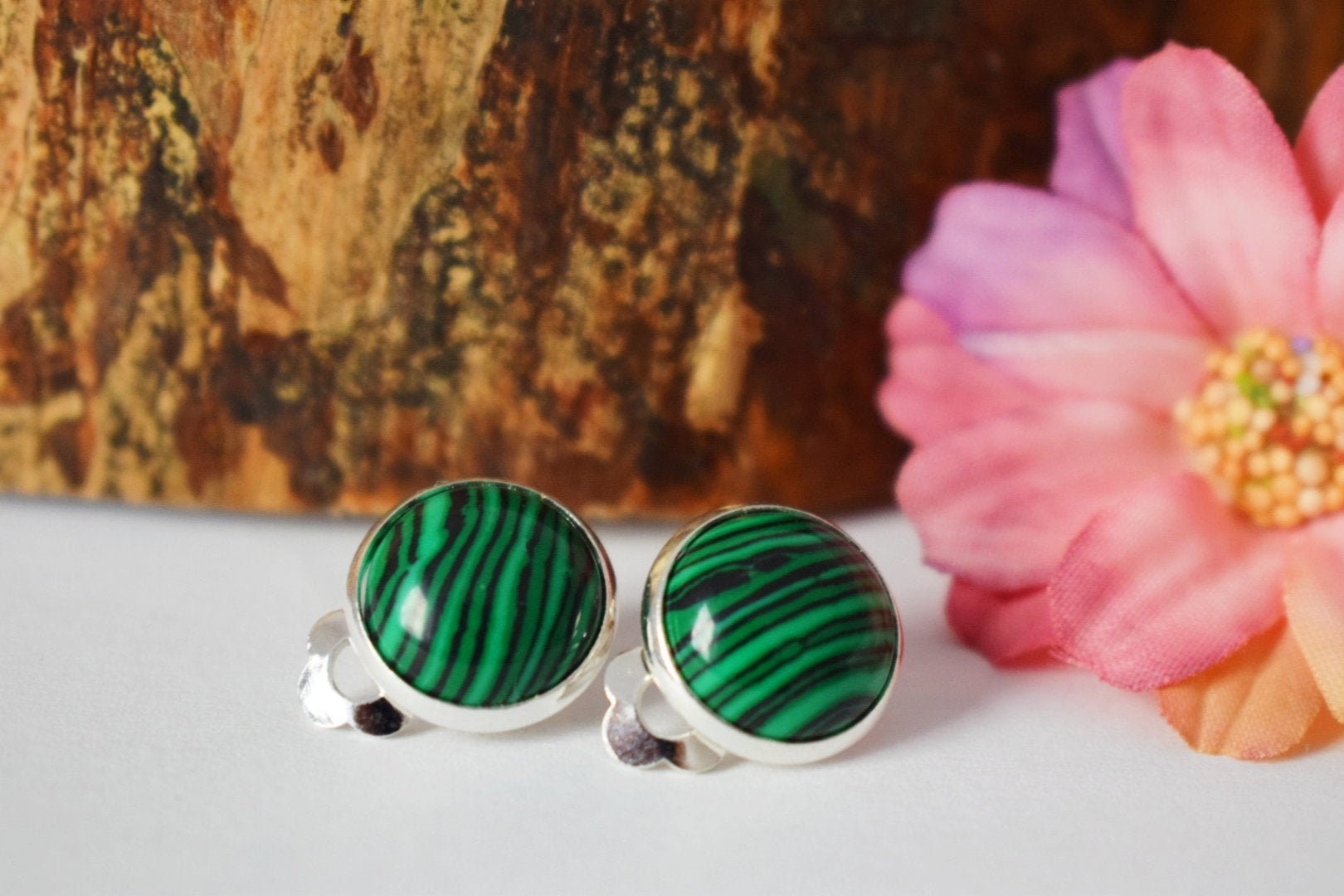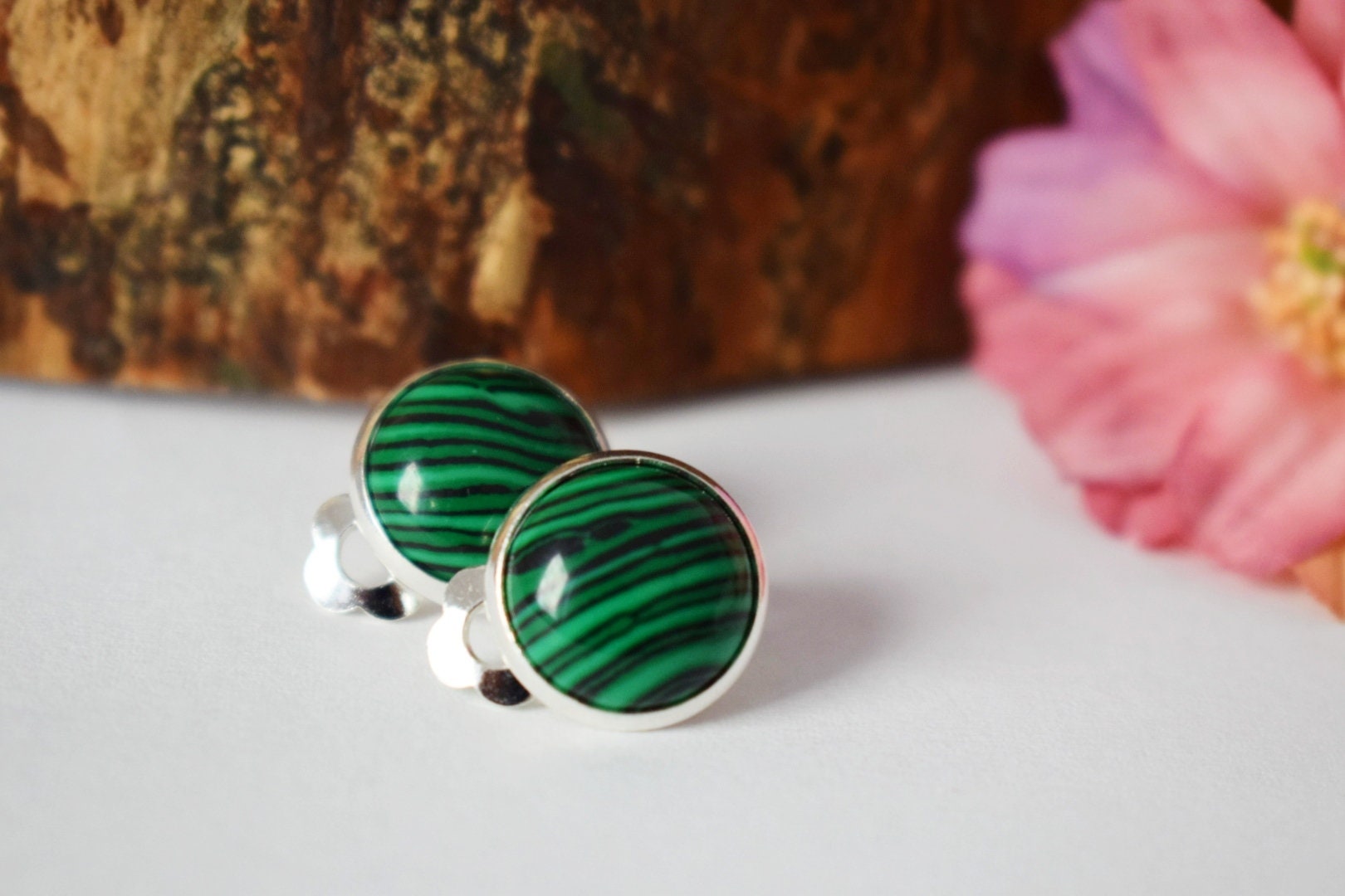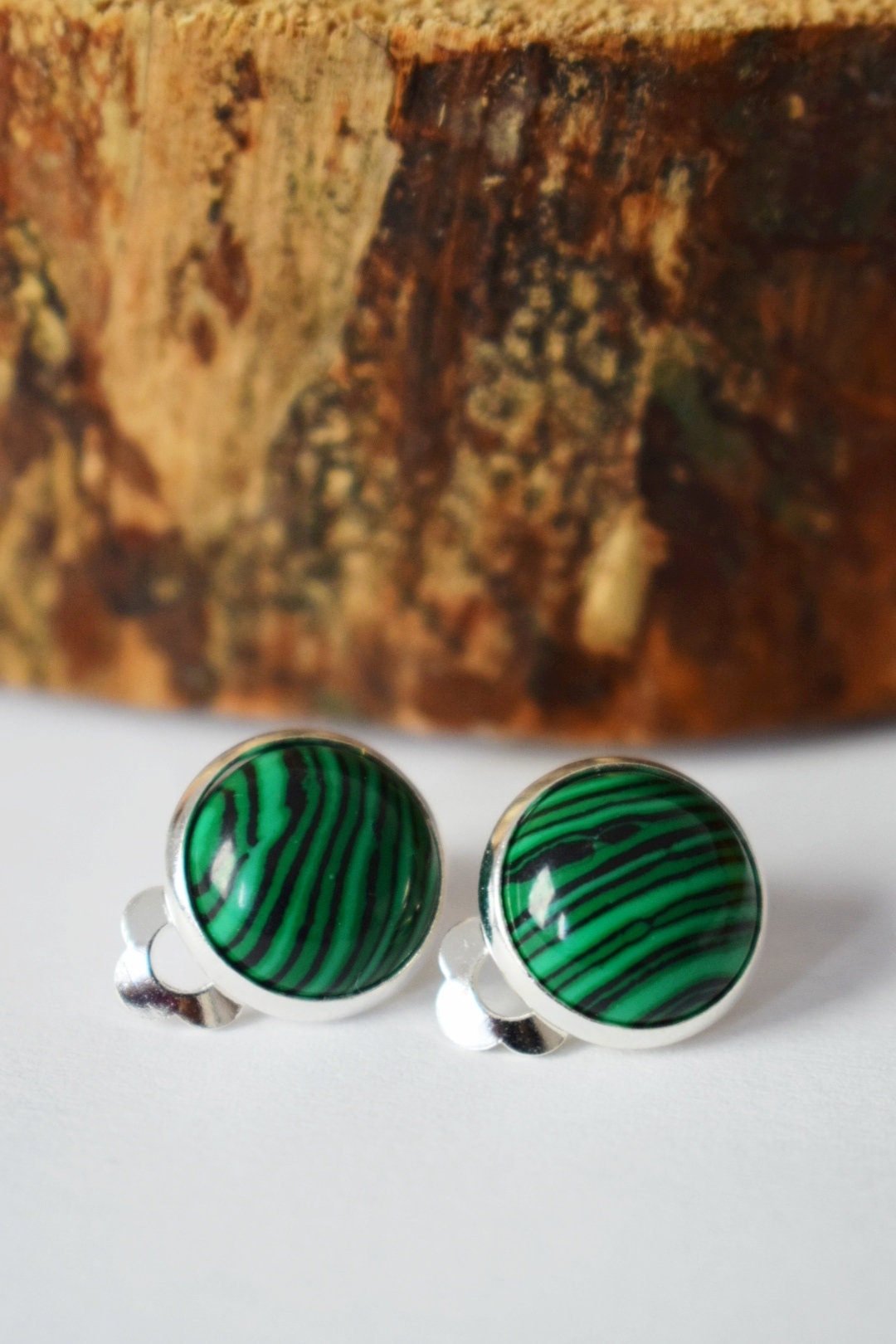 Malachit Ohrclips, Grüner Edelstein, Ohrringe ohne Loch, Chirurgische Ohrclips aus Stein für Frauen, Ohrringe ohne Ohrloch, Unisex Schmuck Geschenk