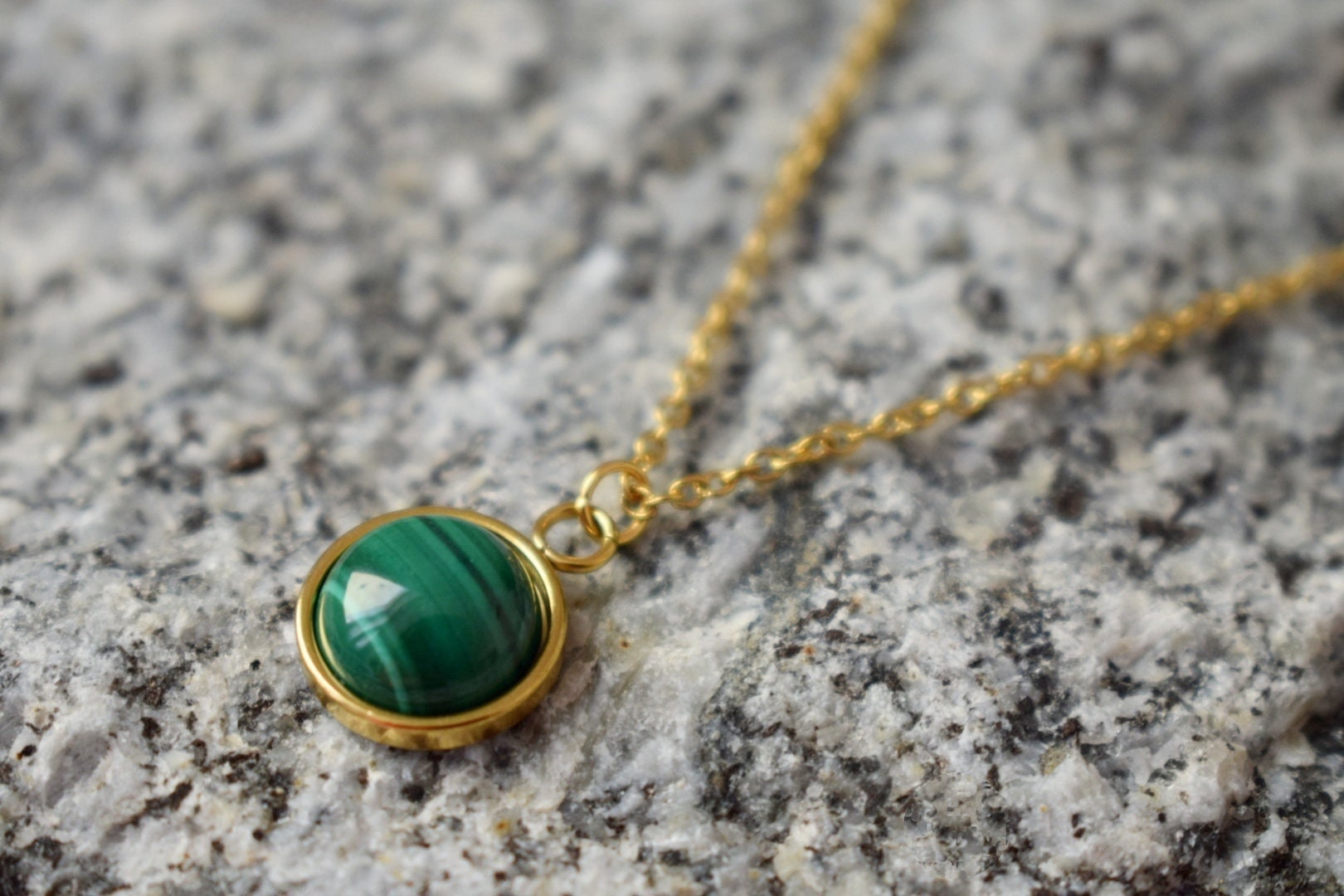 ✅ Materials used:- Natural Malachite cabochon, jewelry glue, High quality 10mm regular real 18k gold plated stainless steel pendant