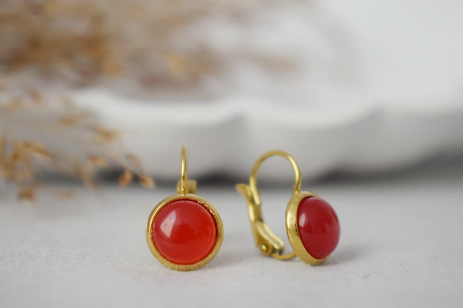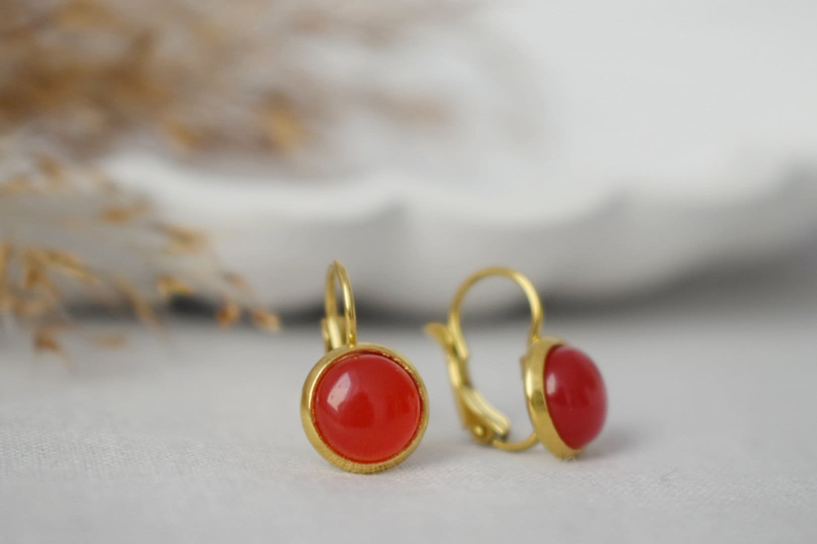 Small Red Jade Dangle Earrings, Gemstone Hanging Earrings, Stainless Steel, Red Stone Earrings, Jade Jewelry, Christmas Gift for Her
