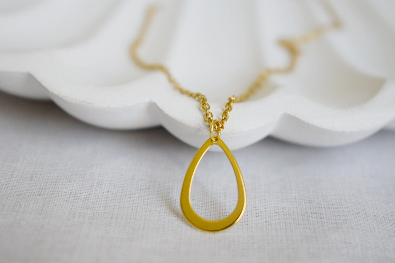 Teardrop necklace, Geometric gold plated stainless steel necklace, minimalist pendant necklace, Jewelry GiftBest christmas gift
