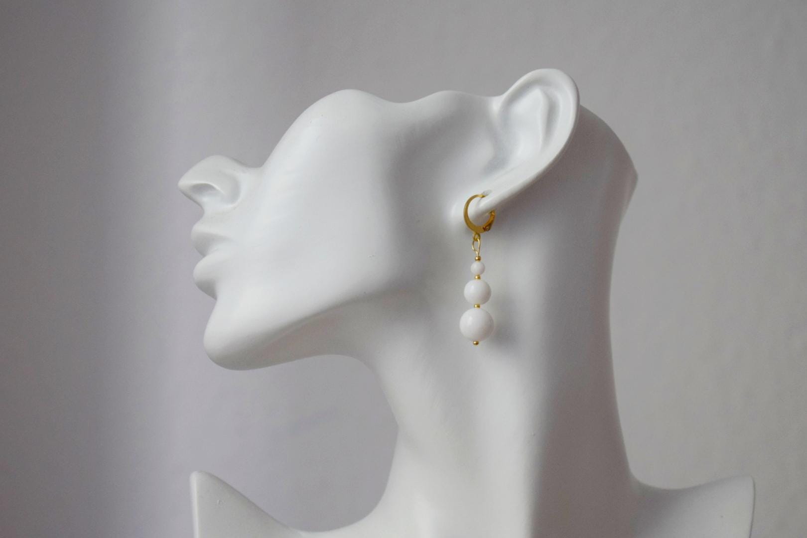 White Jade Dangle Earrings, 24k Gold Plated Hoop, Minimalist Boho Chic Jewelry, Handmade Gemstone Earrings, Elegant Gift for Her