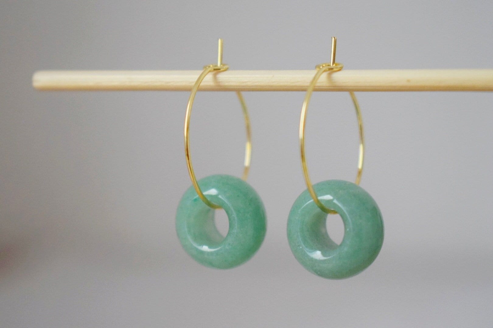 Aventurine donut hoop earrings, 18k Gold plated surgical stainless steel hoops, Gemstone unisex jewelryBest christmas gift