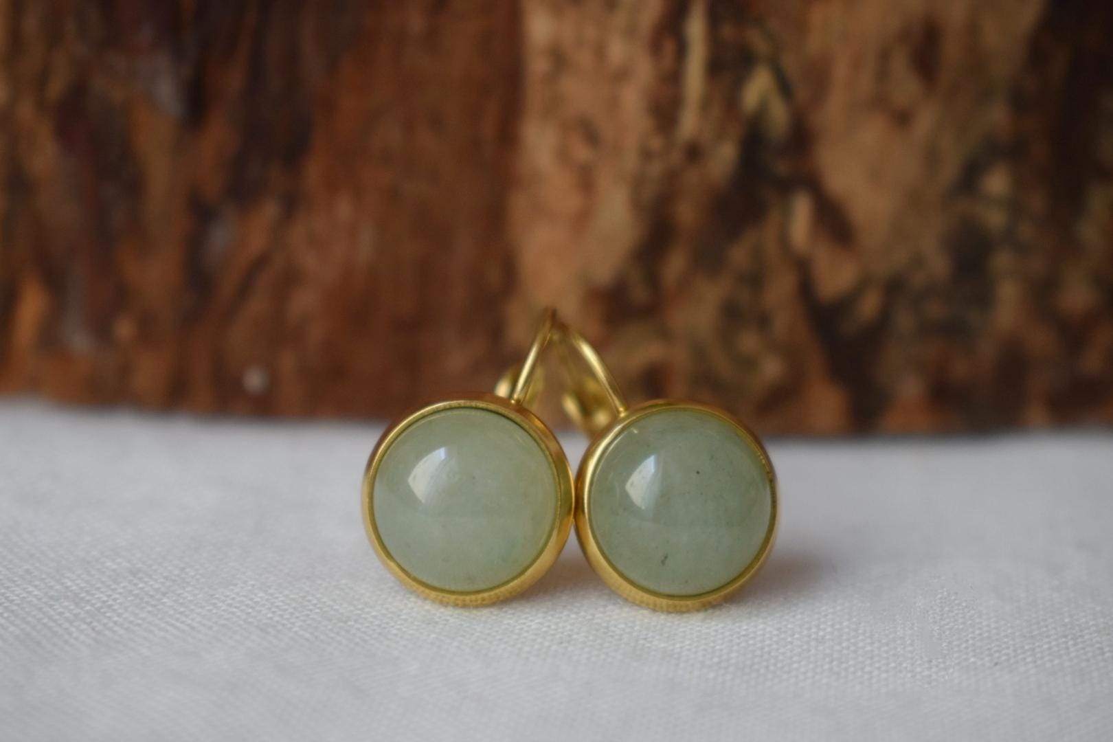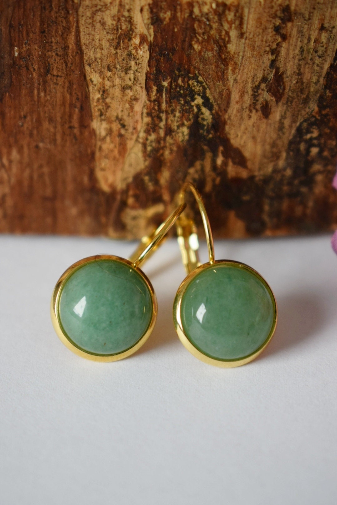 Aventurine earrings dangle, Green gemstone earrings, Birthstone golden jewelry, Best christmas gift for her