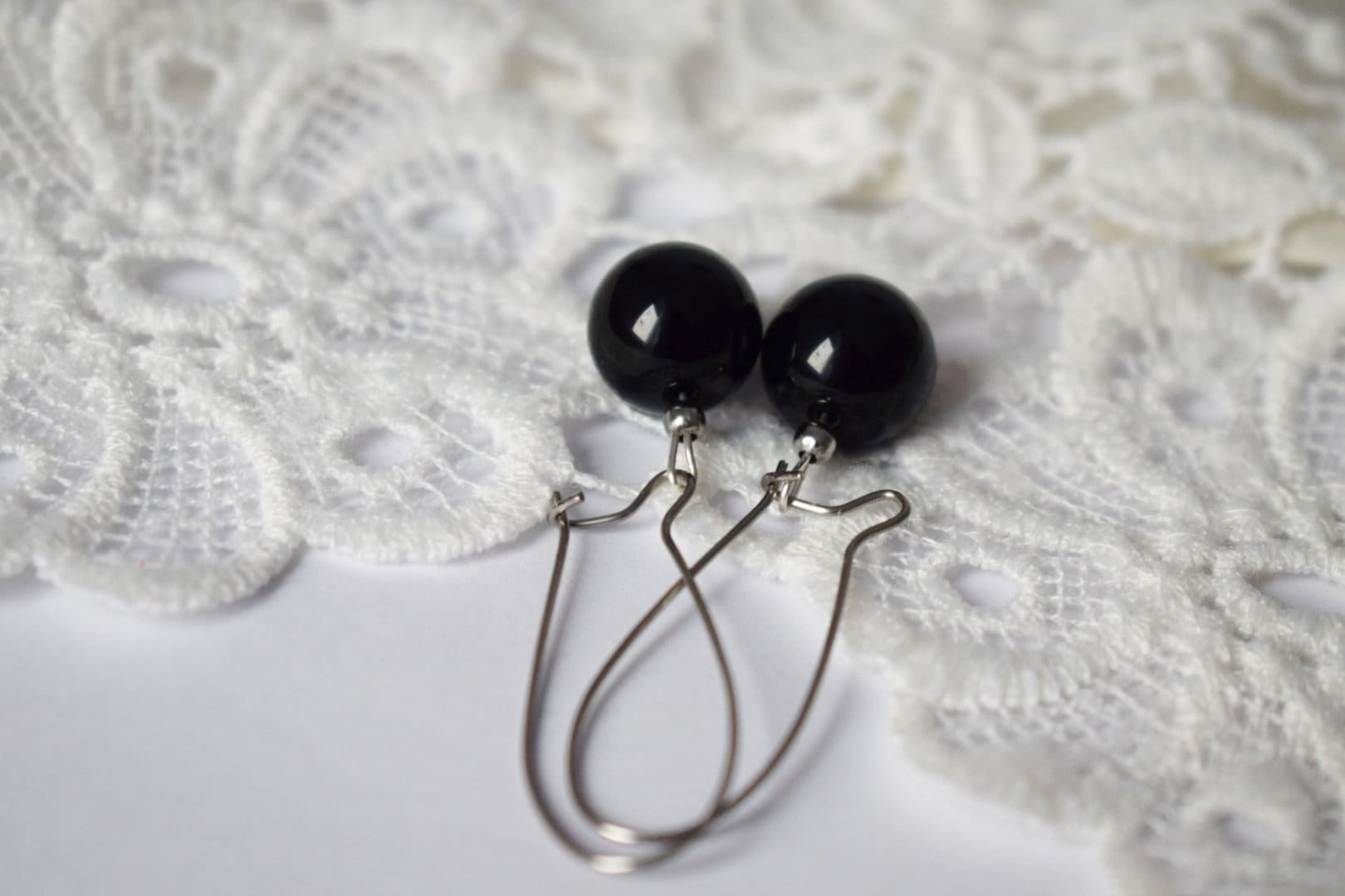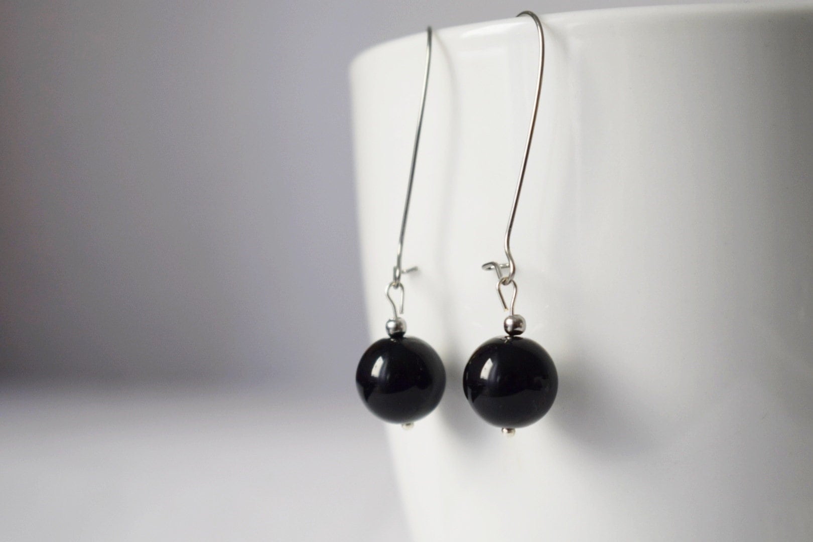 Black hoop earrings for women, Agate hoop earrings, Black agate, Boho hoop earrings with gemstone, Handmade jewelry, Gift for her