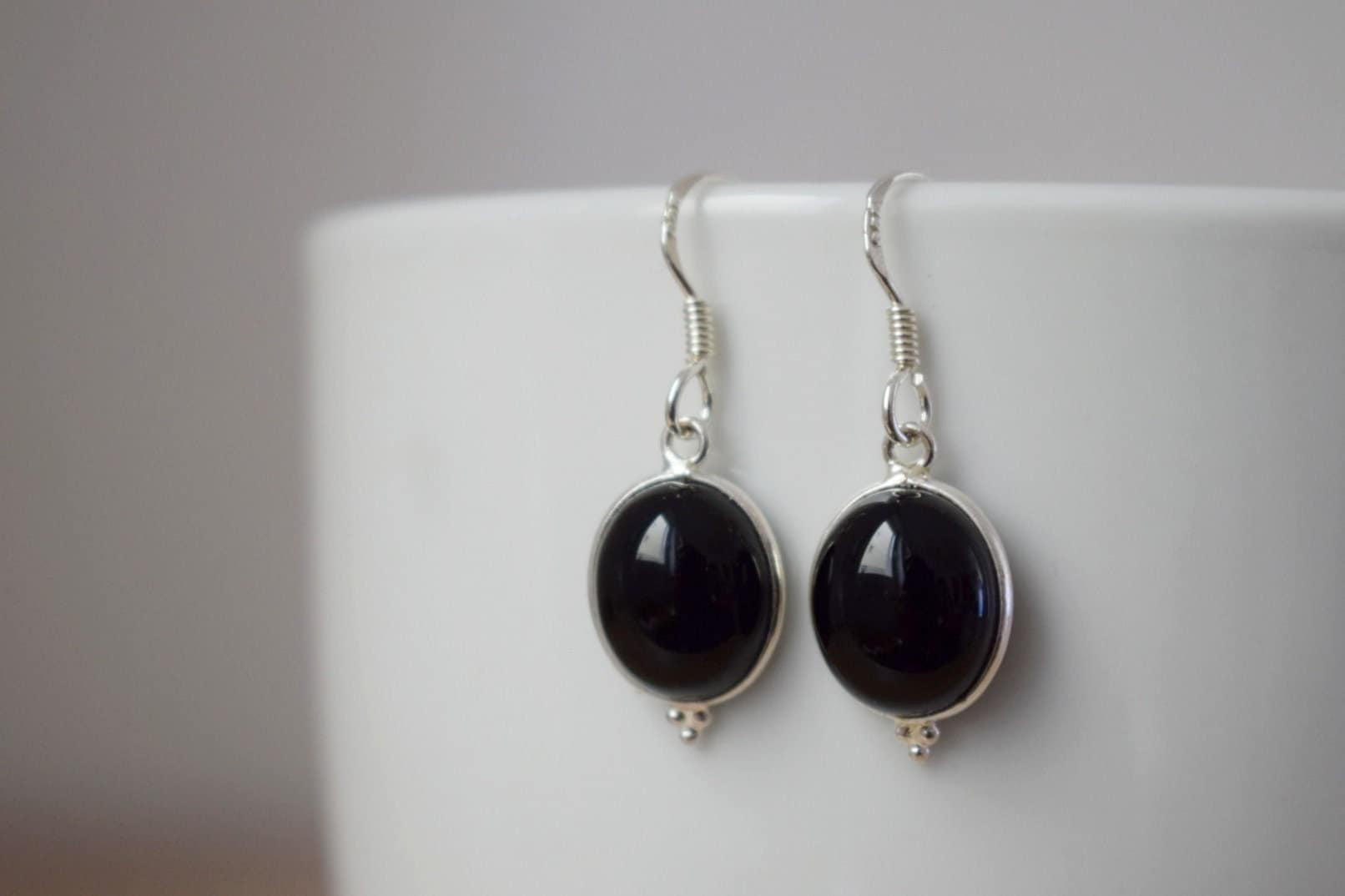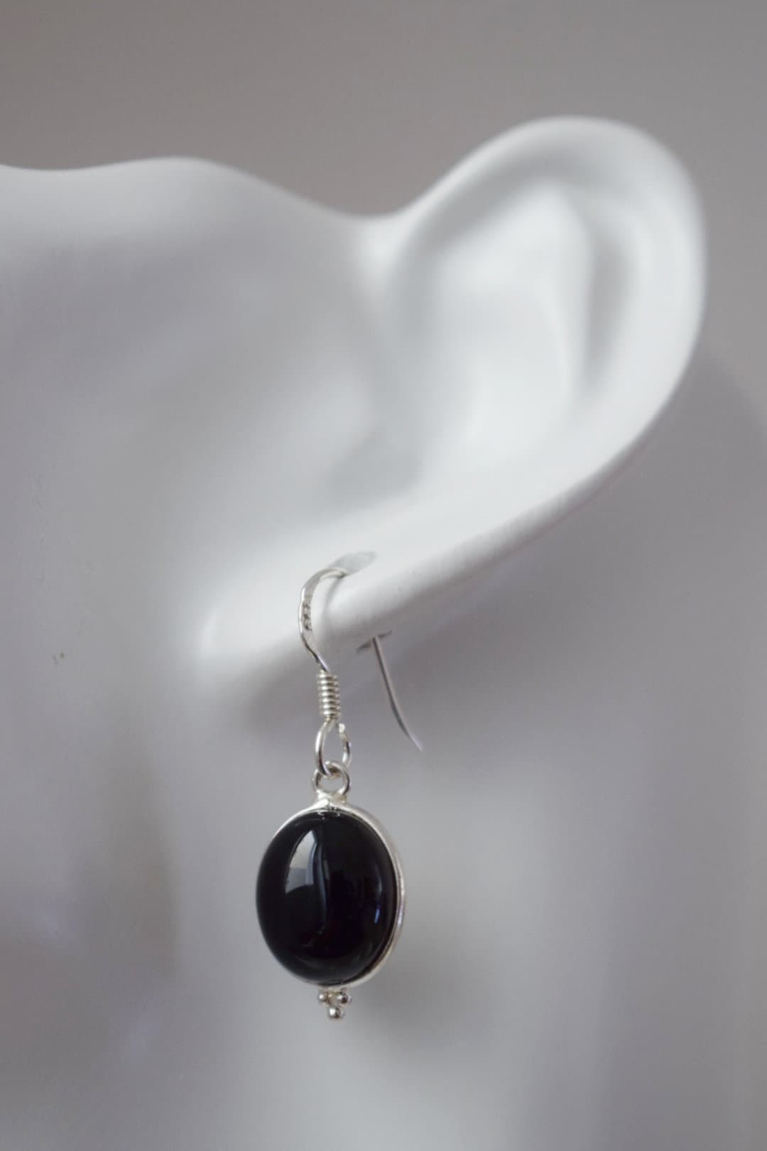 Natural Black Onyx Cabochon Natural Black Onyx Cabochon. 925 Sterling silver material. Whole ears are made with 925 Sterling silver material.Highlights
