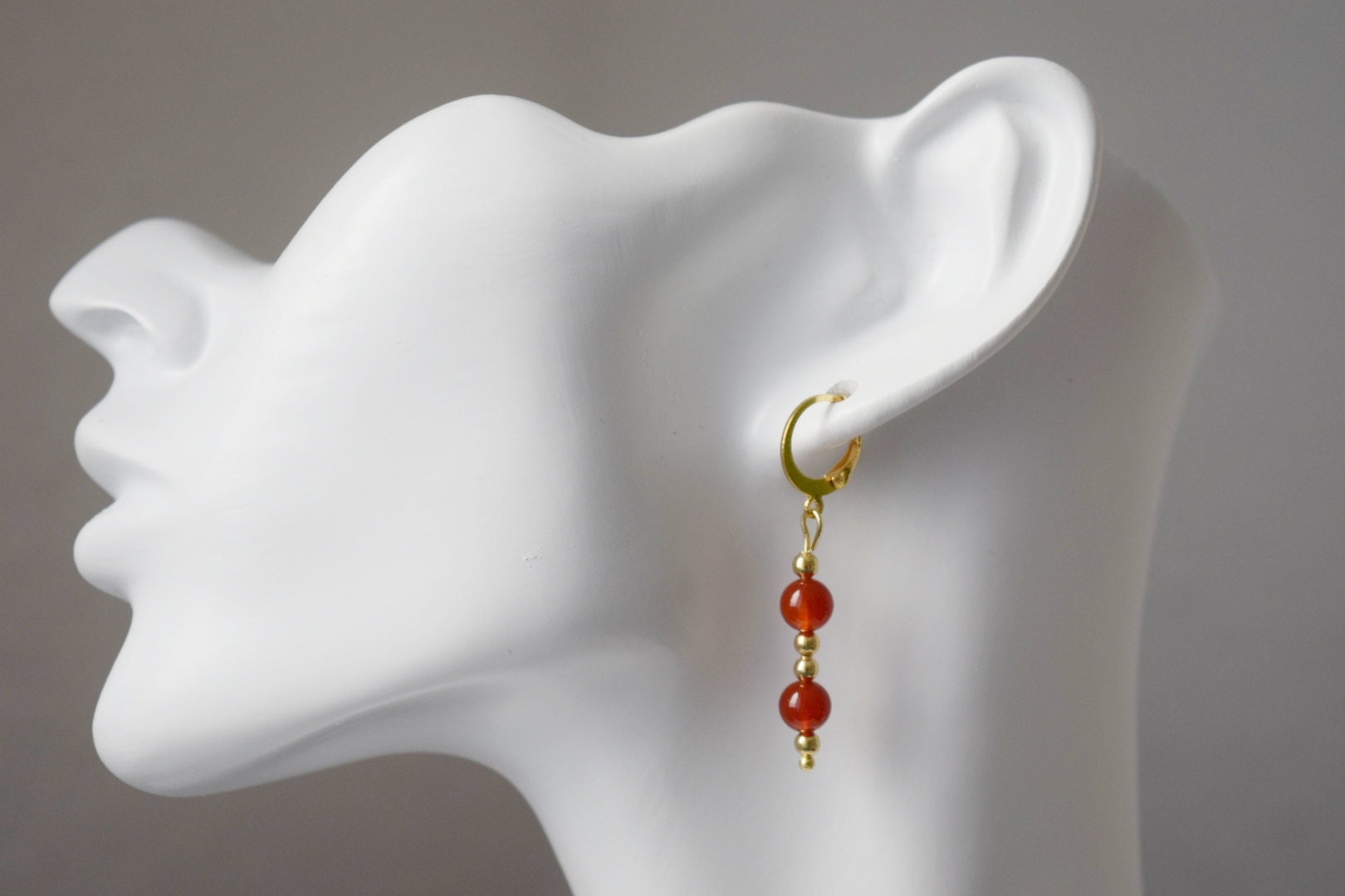 Carnelian Dangle Ears Gold, Red Orange Carnelian Gemstone Huggie ears, Carnelian Jewelry, Natural Stone, Jewelry Gift For Her