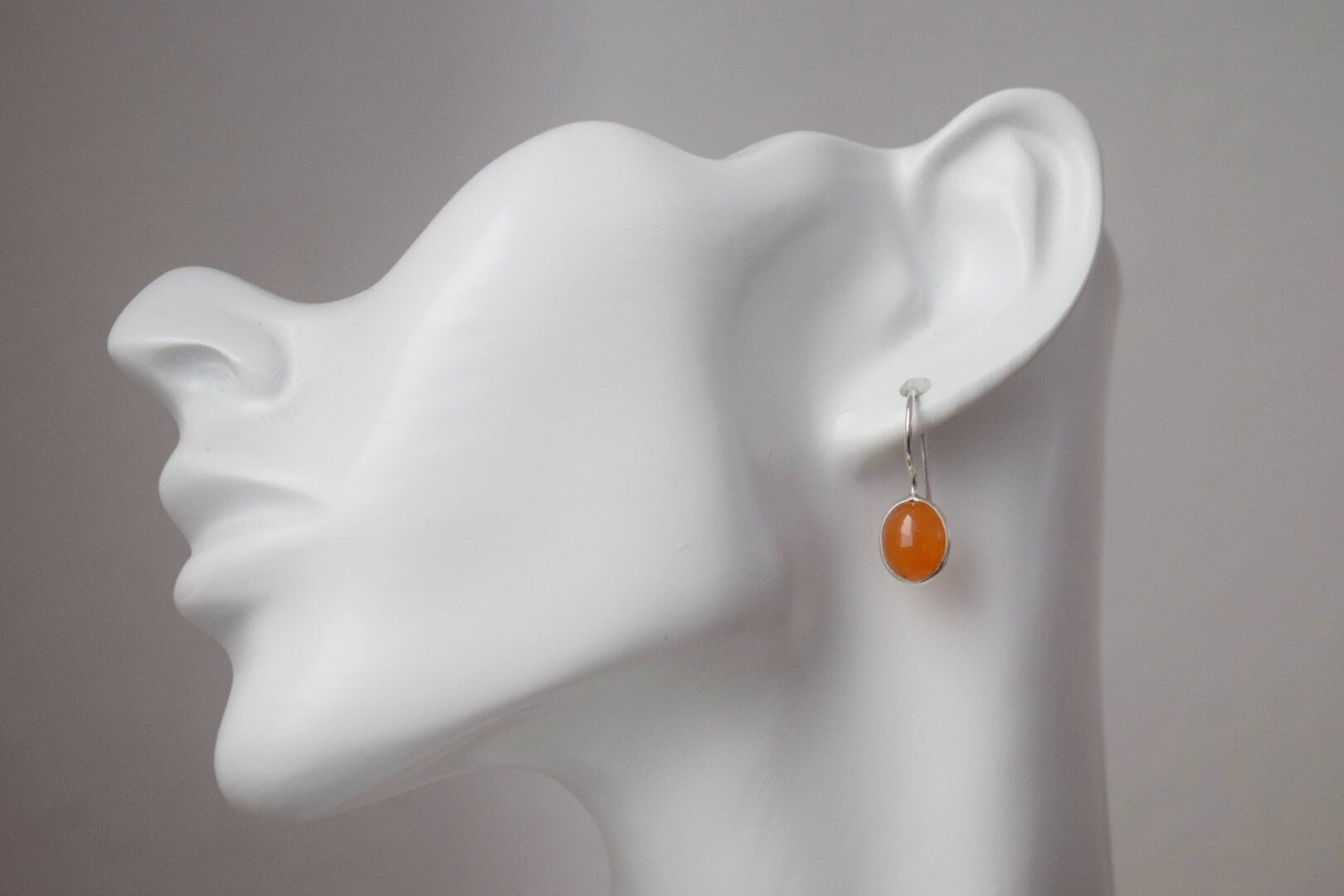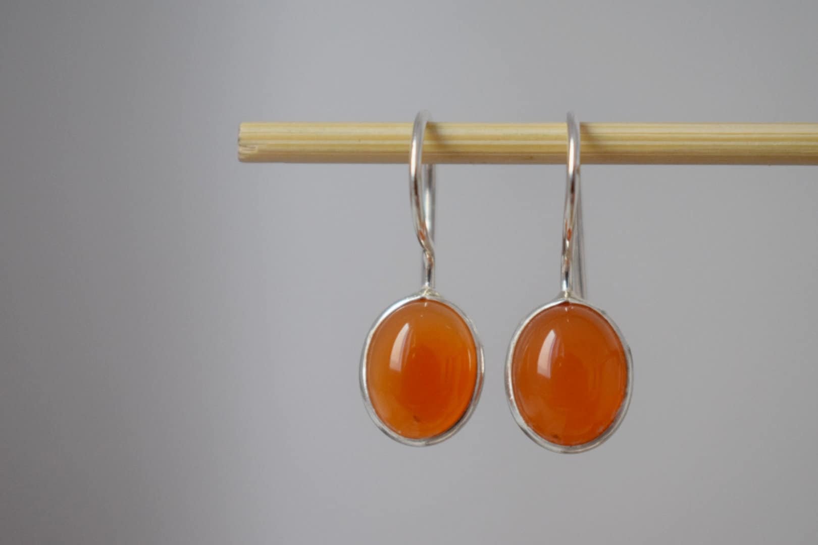 Carnelian sterling silver ears, Oval orange gemstone dangle 925 silver ears, Natural stone, Unique jewelry gift