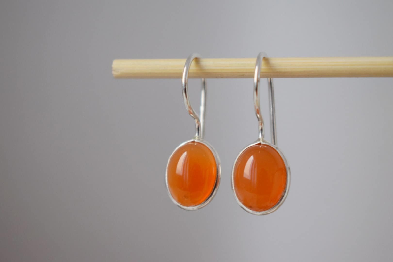 Carnelian sterling silver earrings, Oval orange gemstone dangle 925 silver earrings, Natural stone, Unique jewelry gift