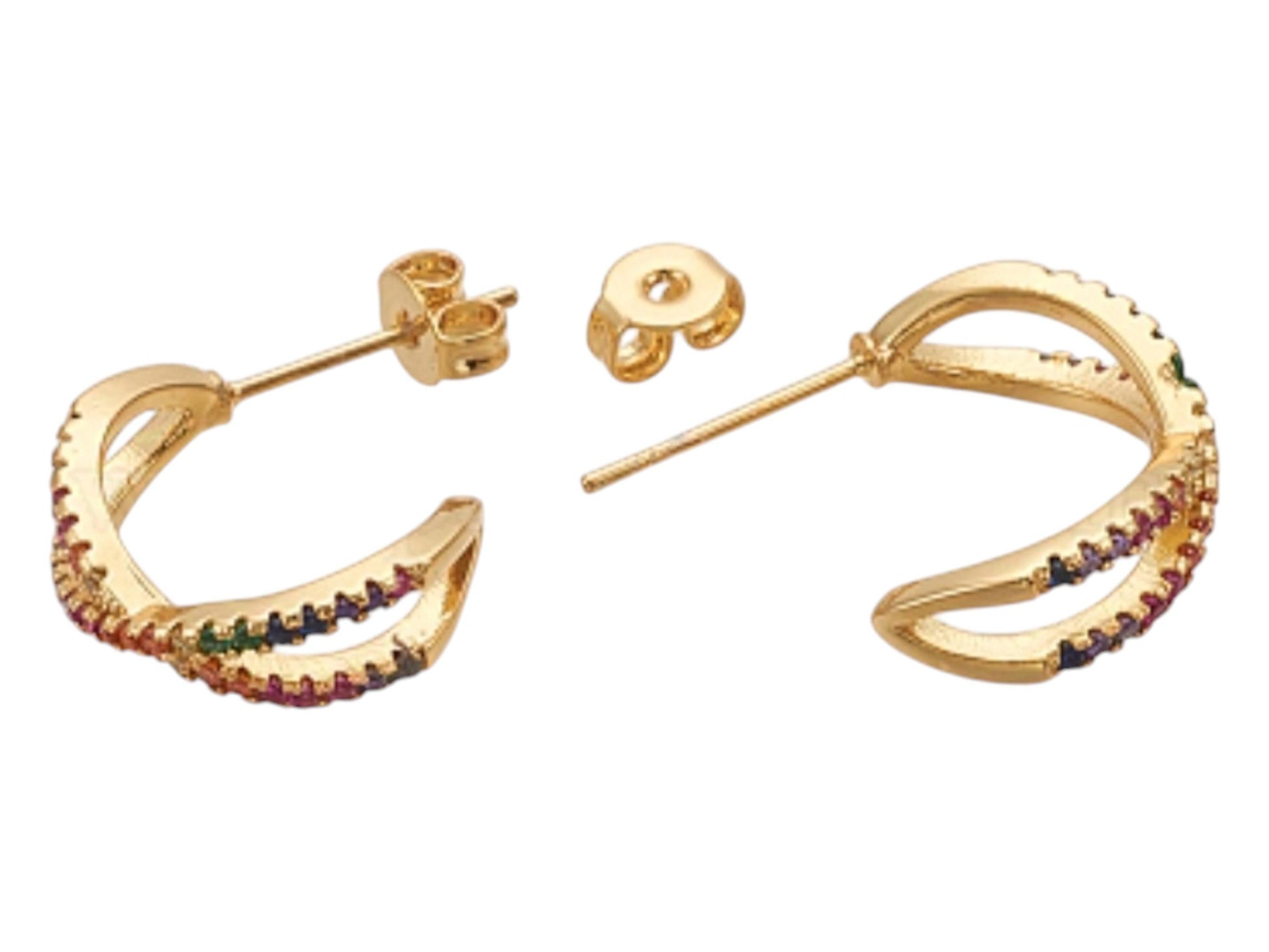 Colorful cubic zirconia stud ears, Gold plated cz stud ears, Classic ears, Women unique jewelry, Christmas gift for her