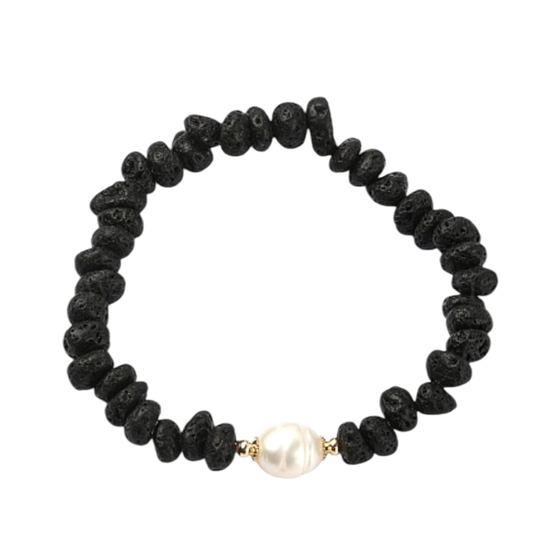 Handmade beautiful stretchable Natural Lava Rock & Pearl Beads Bracelet