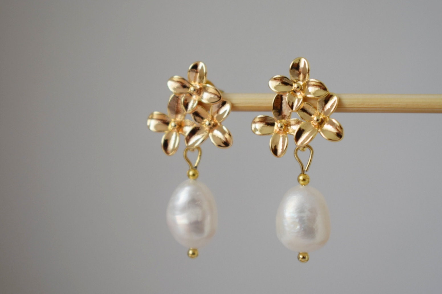 Elegant Freshwater Pearl Earrings, 18K Gold Plated Flower Studs, Vintage Style Bridal Jewelry, Perfect Bridesmaid Gift, Christmas Gift Her