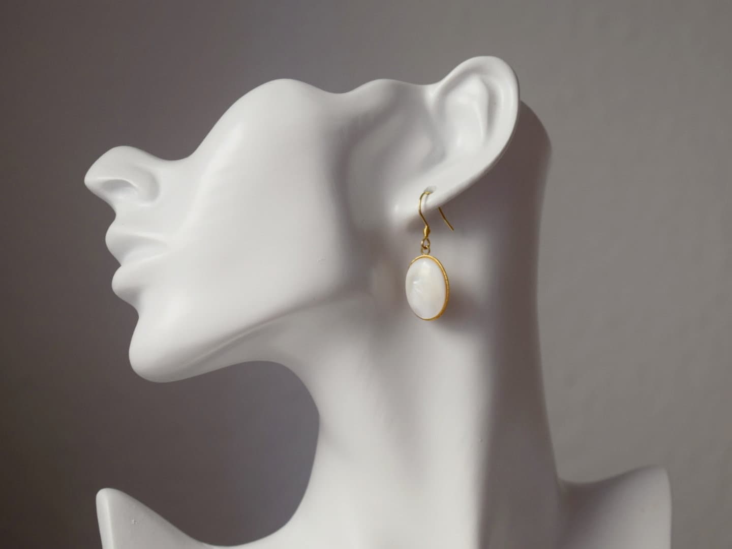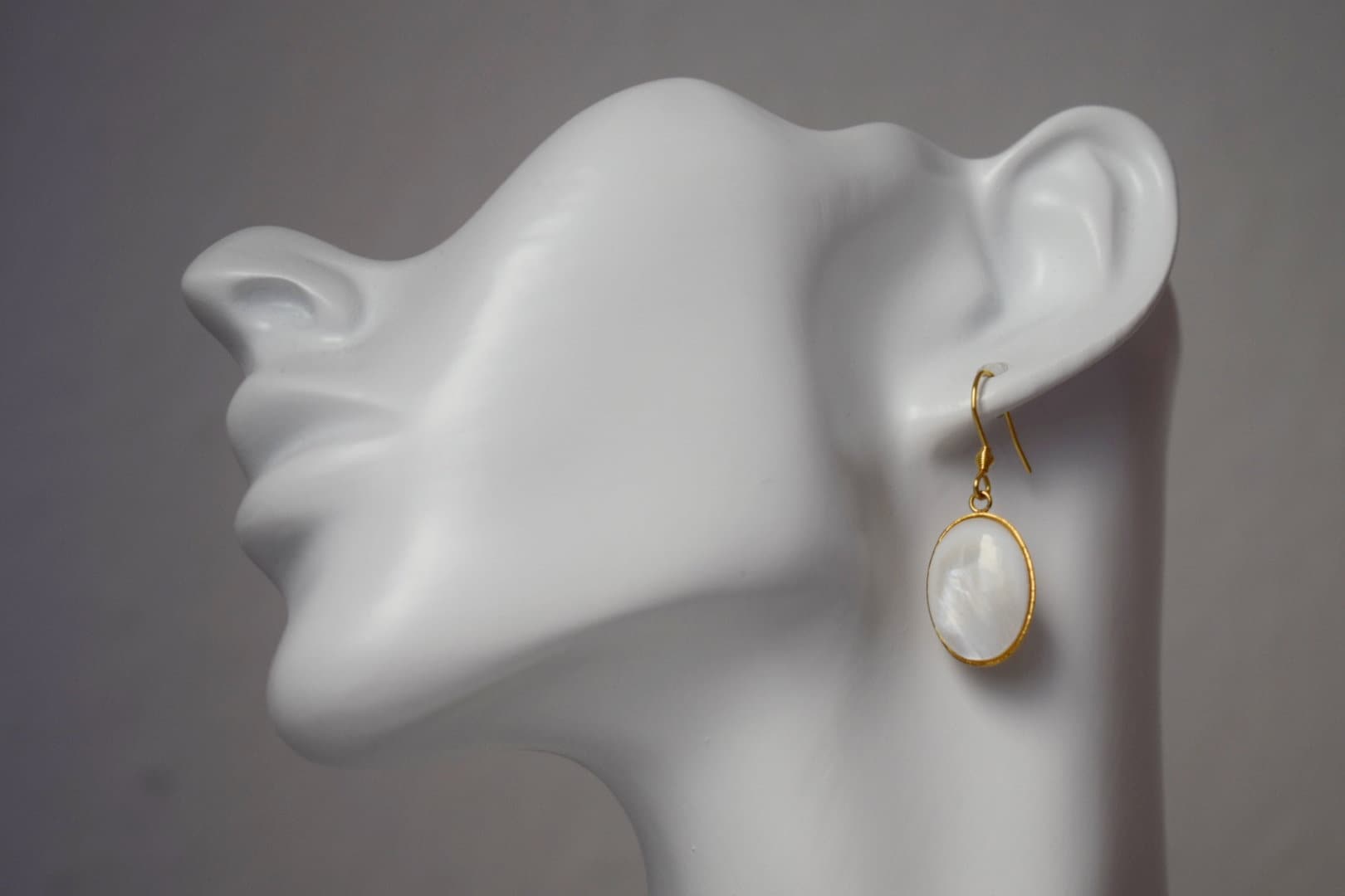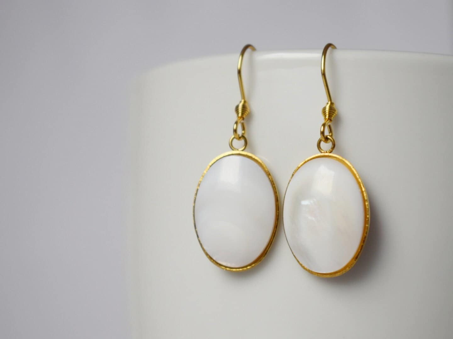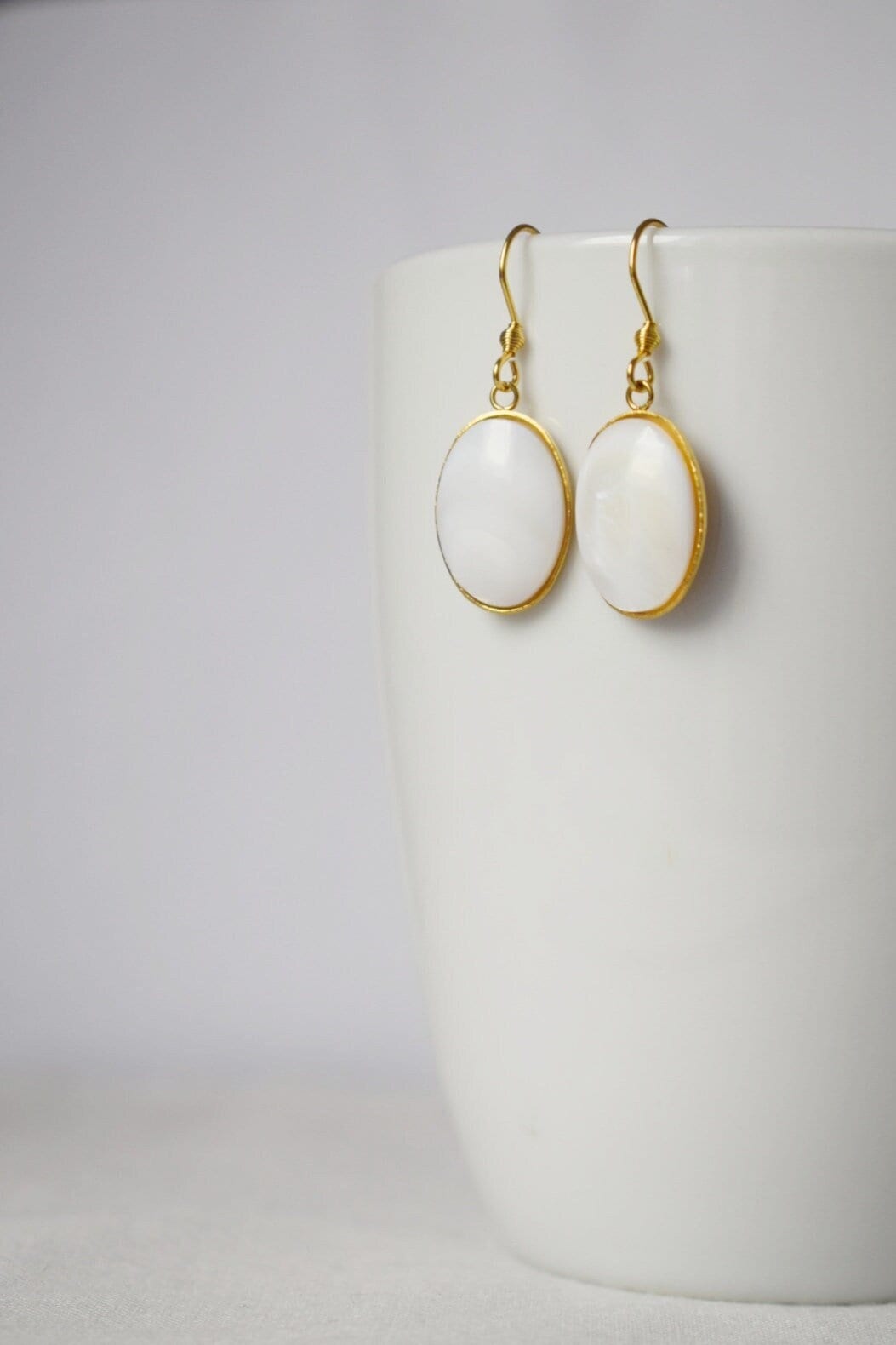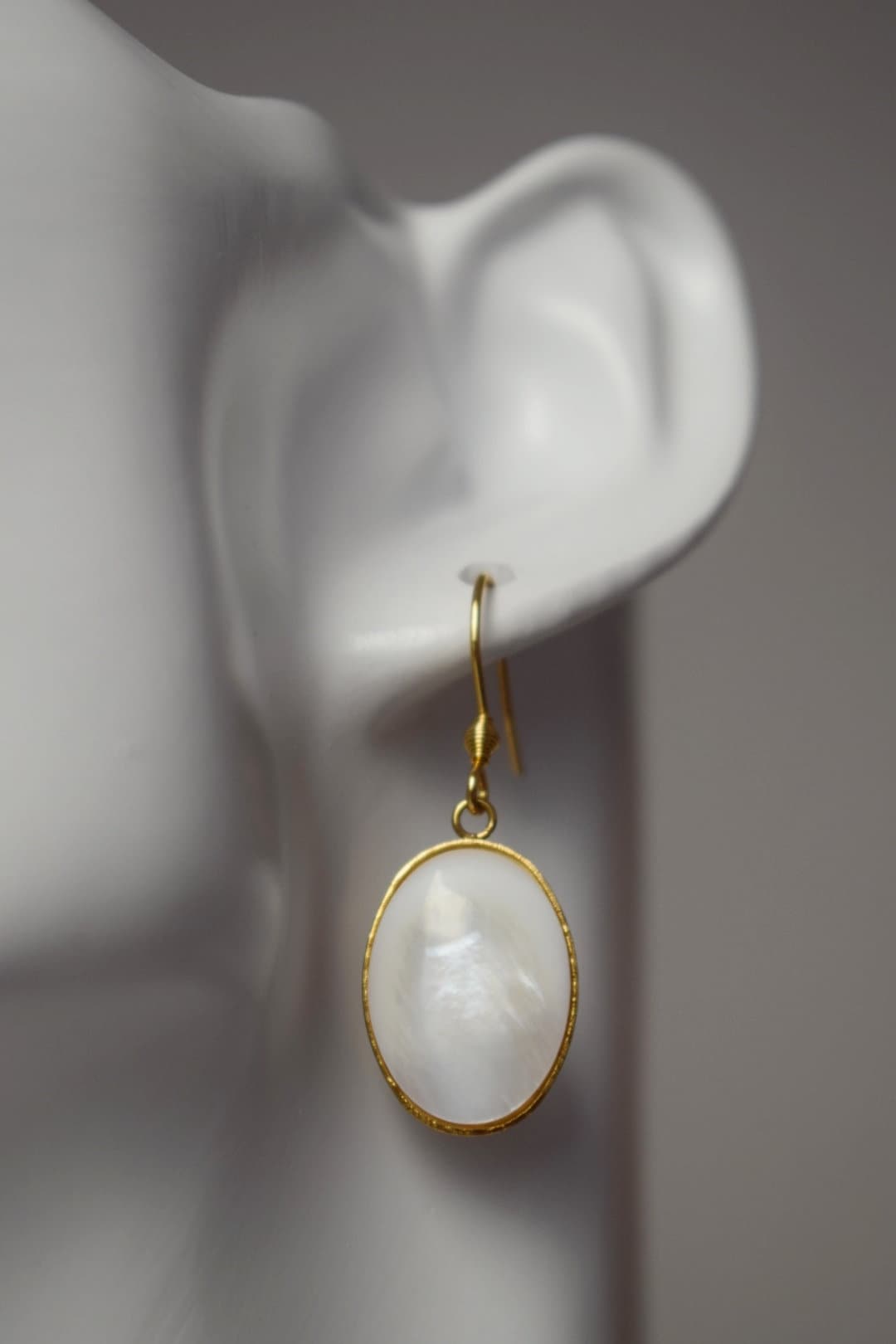 Freshwater shell gold ears, Pearl gold ears, Oval pendant dangle ears, Bridesmaid, Wedding jewelry, Handmade gift for her
