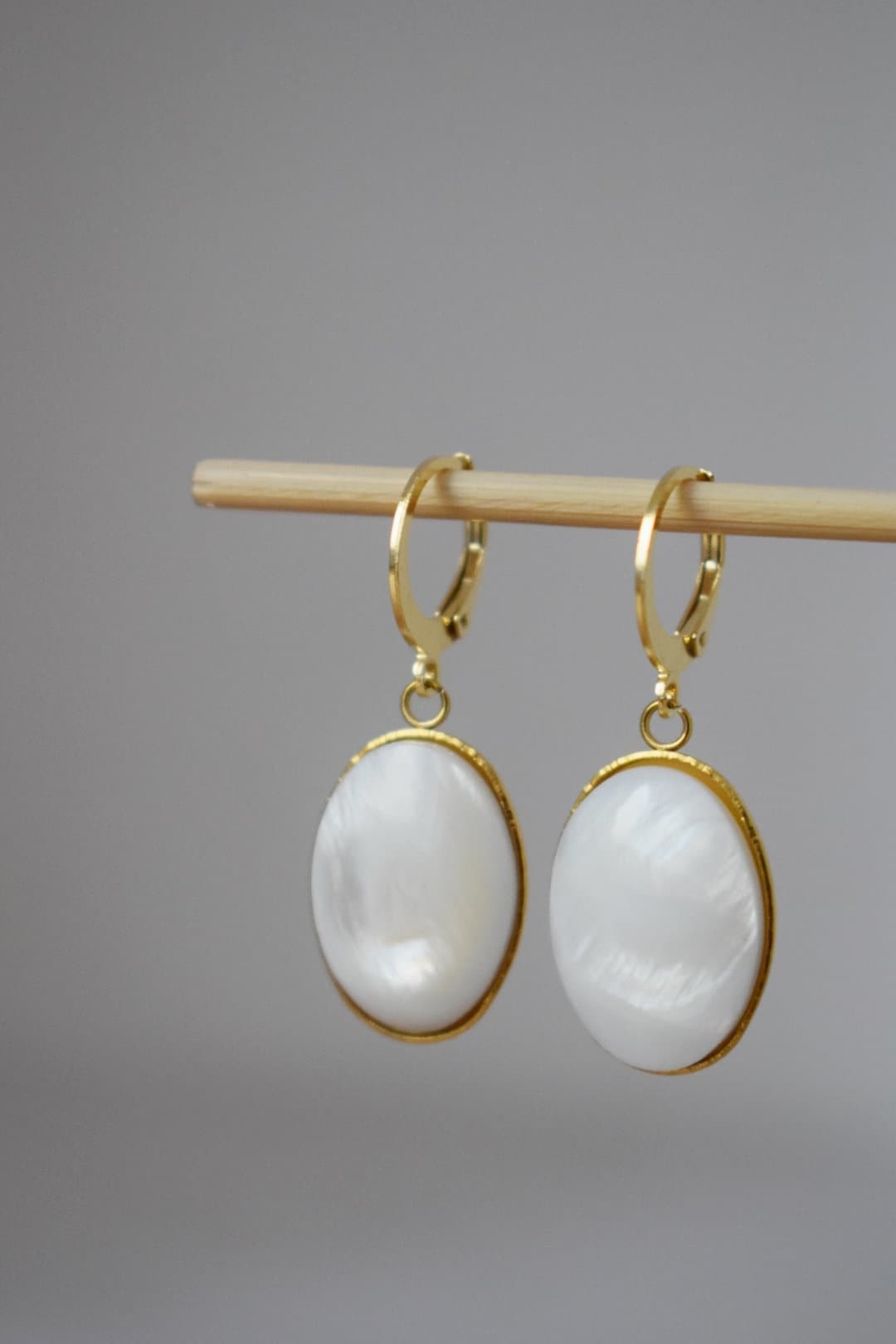 Freshwater shell huggie earrings, Elegant dangle earrings, Handmade Jewelry gift for her, Best Christmas gift