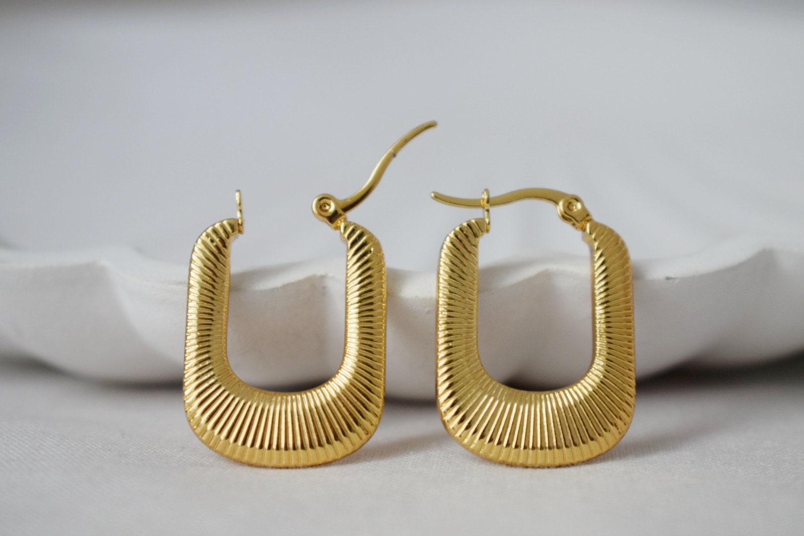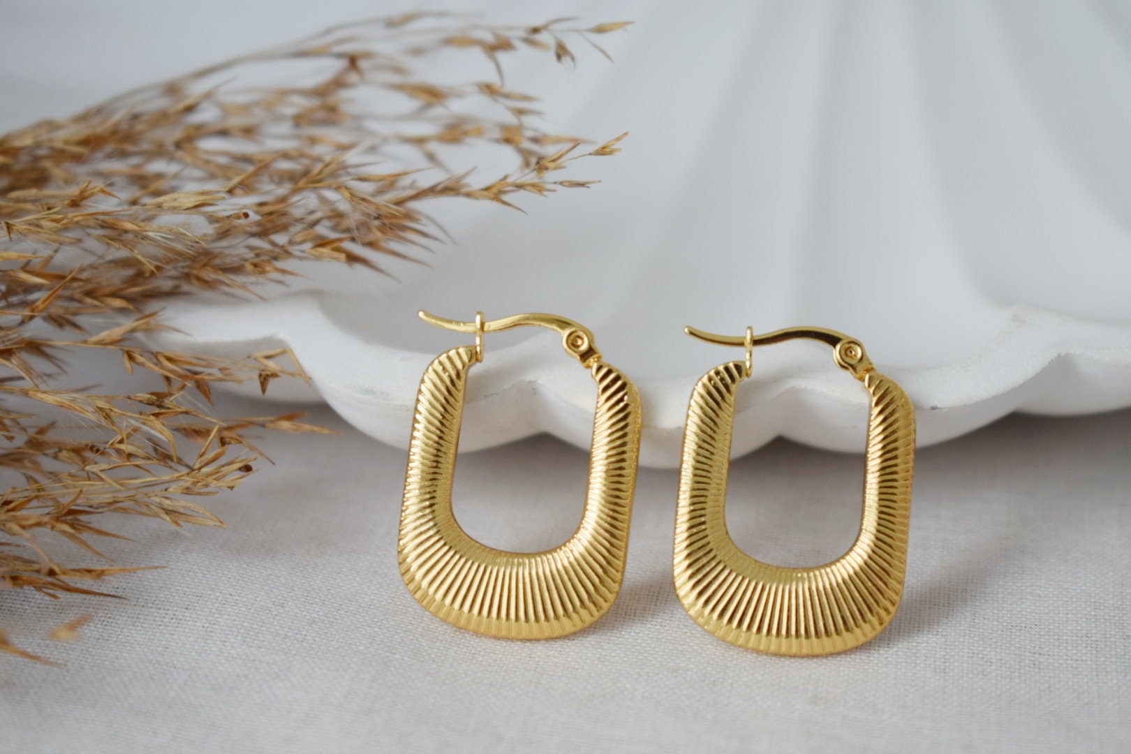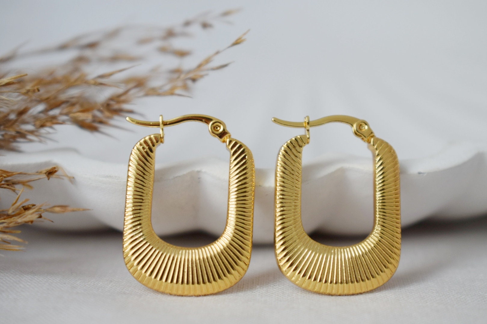 Geometric hoops, Rectangle earrings, 18k Gold plated stainless steel, Chunky statement hoops, Modern minimalist unique jewelry, Gift for her