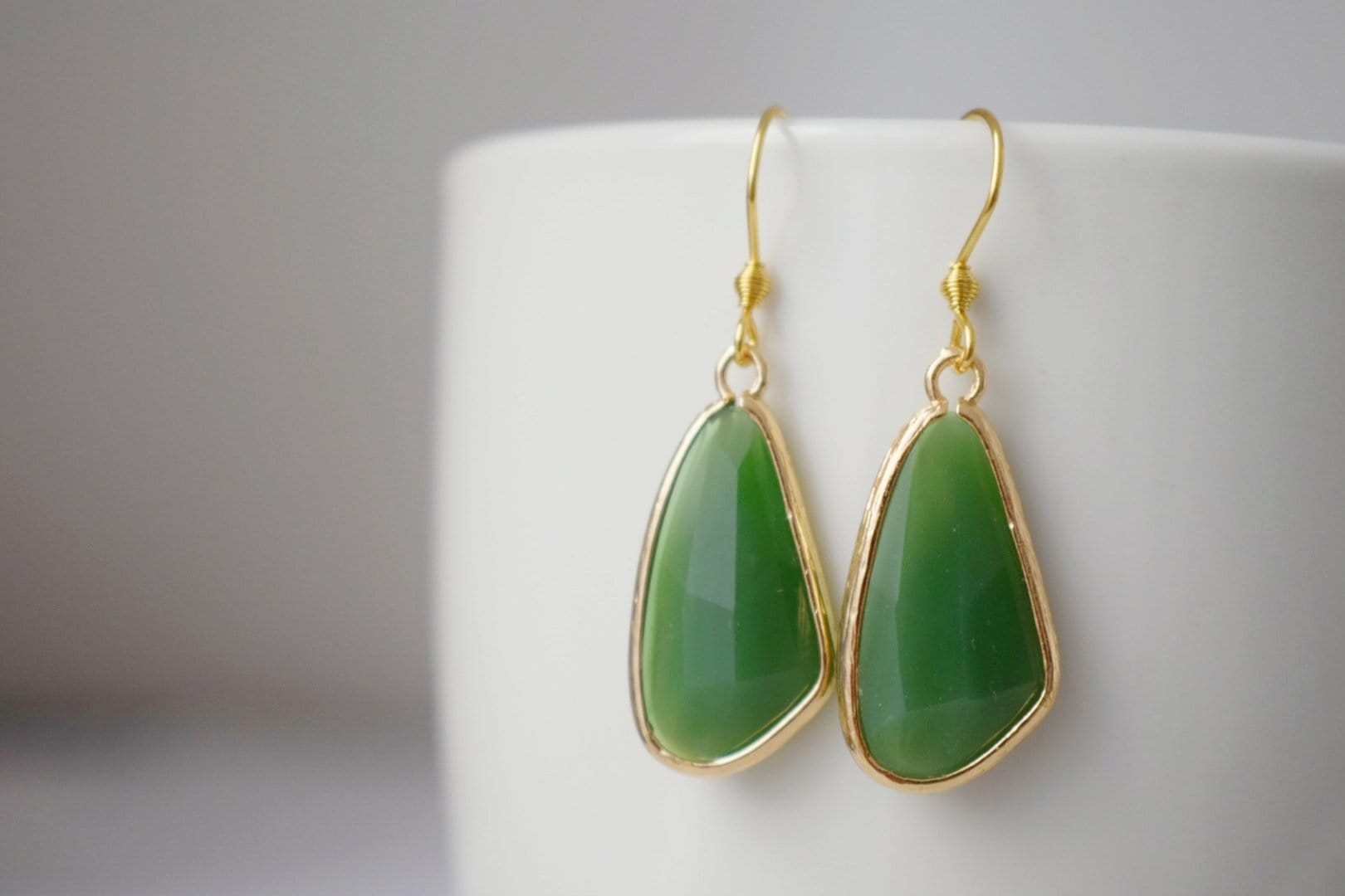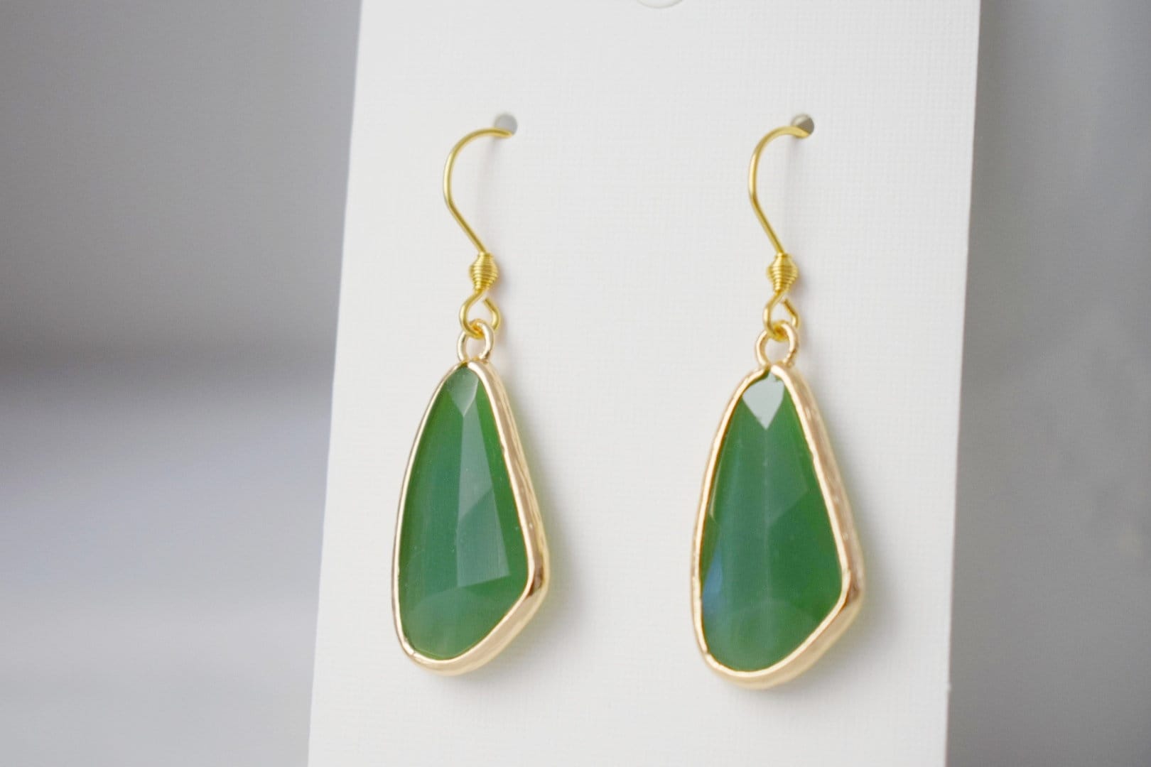 Glass dangle ears, Large teardrop ears, Faceted ears, Aventurine green, Long teardrop boho hanging ears, Glass gold jewelry