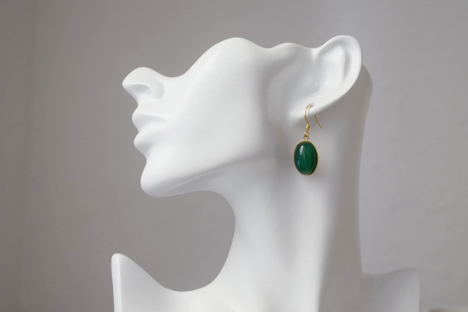 Green agate earrings gold, Oval gemstone earrings, Green stone dangle earrings, Hanging green earrings, Handmade agate jewelry, Gift for her