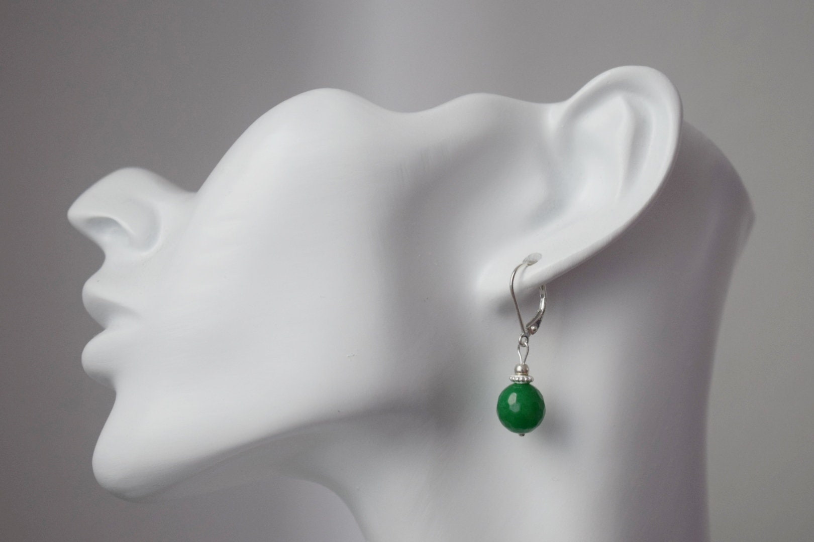 Handmade beautiful sterling silver dangle ears with jade beads in beautiful green