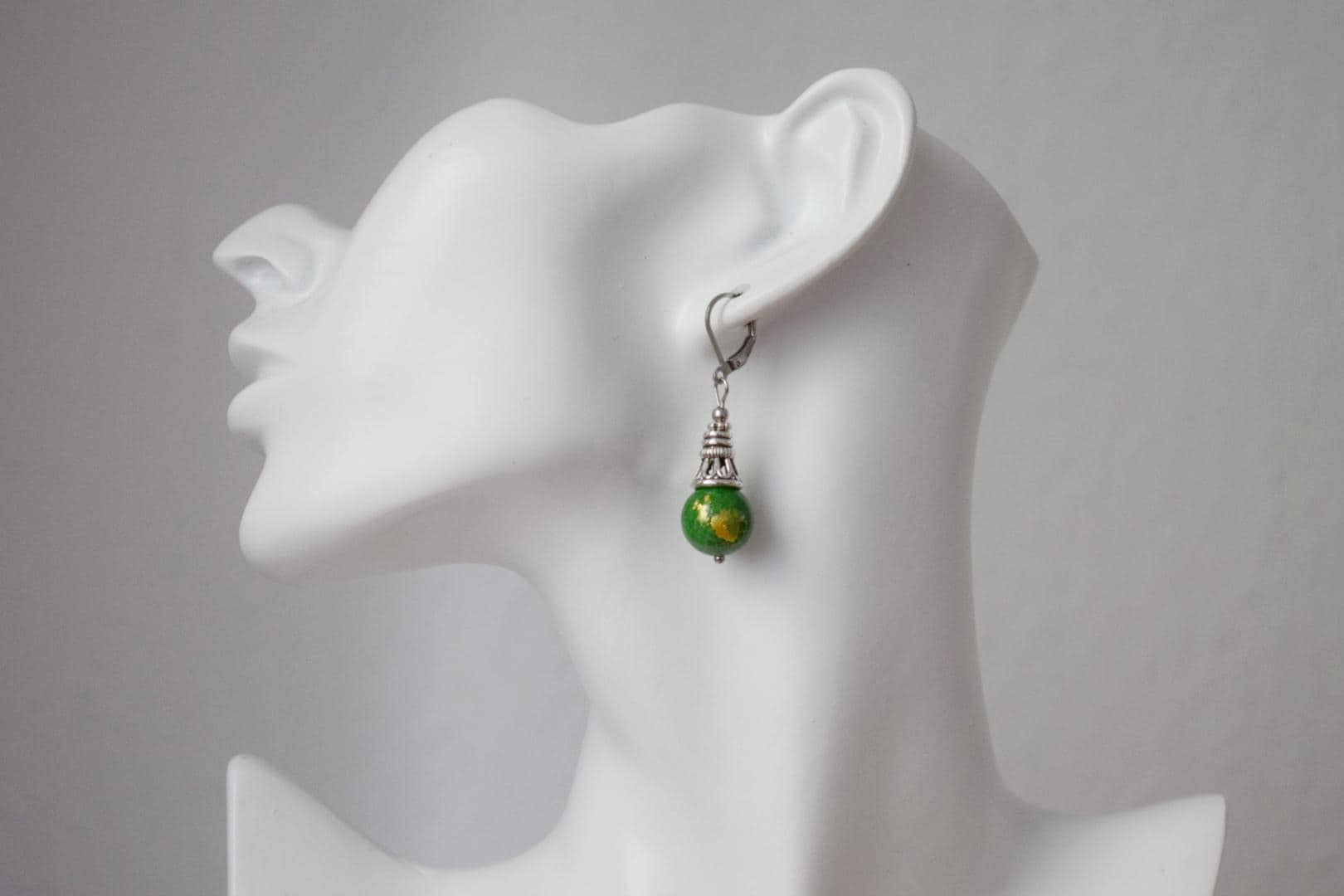 Handmade beautiful dangle ears with jade pearls/ beads in beautiful green