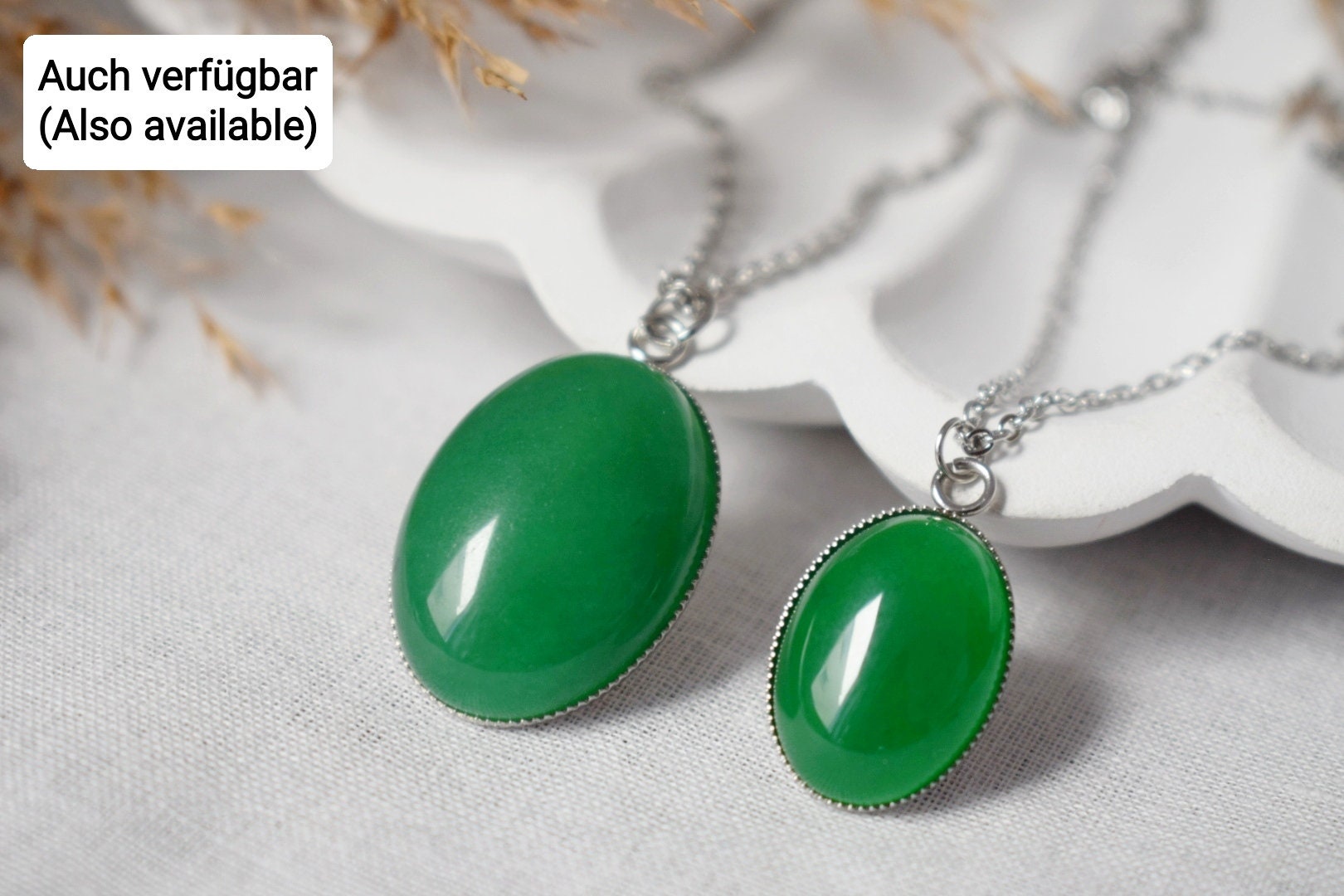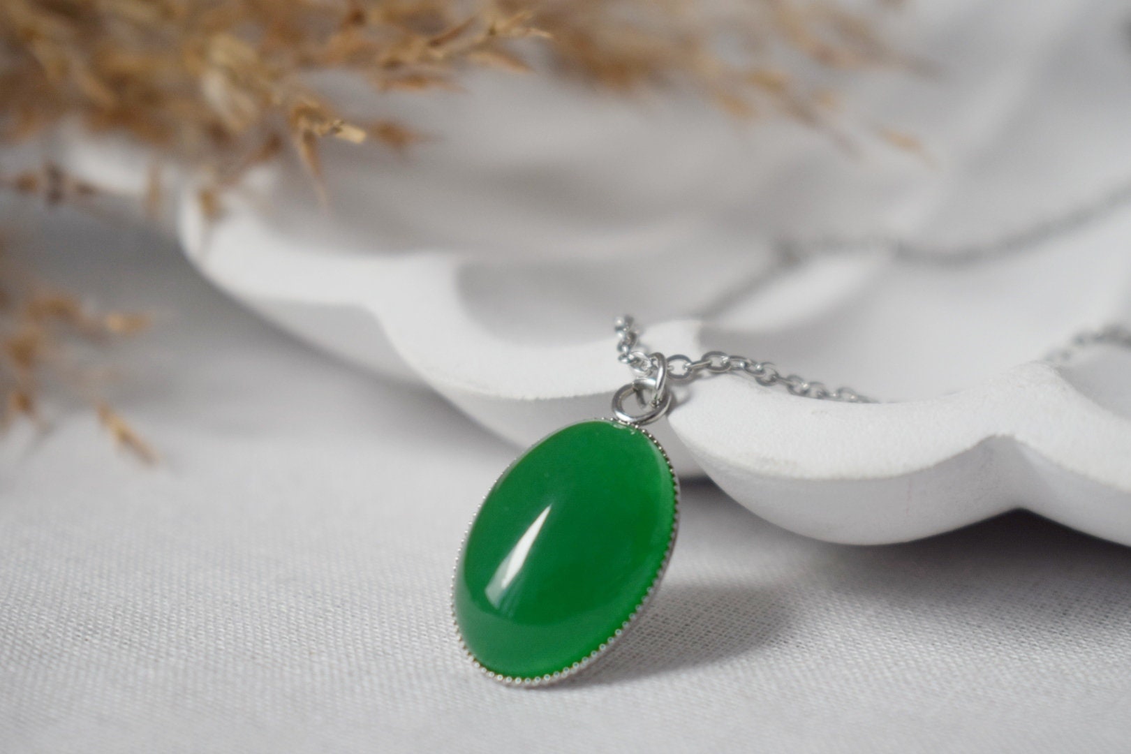 Green jade pendant necklace silver for women, Oval, Green necklace, Green gemstone necklace, Jade pendant, Handmade jewelry gift for her