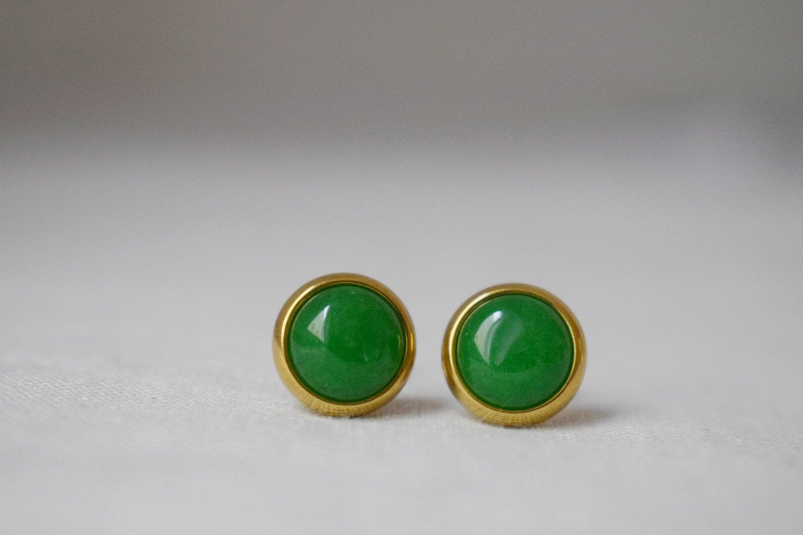 Natural Green Jade Stud Ears, Minimalist Gold Ears, 8mm Ears, Positive Jewelry, Gemstone, Birthday Anniversary Gift For Her