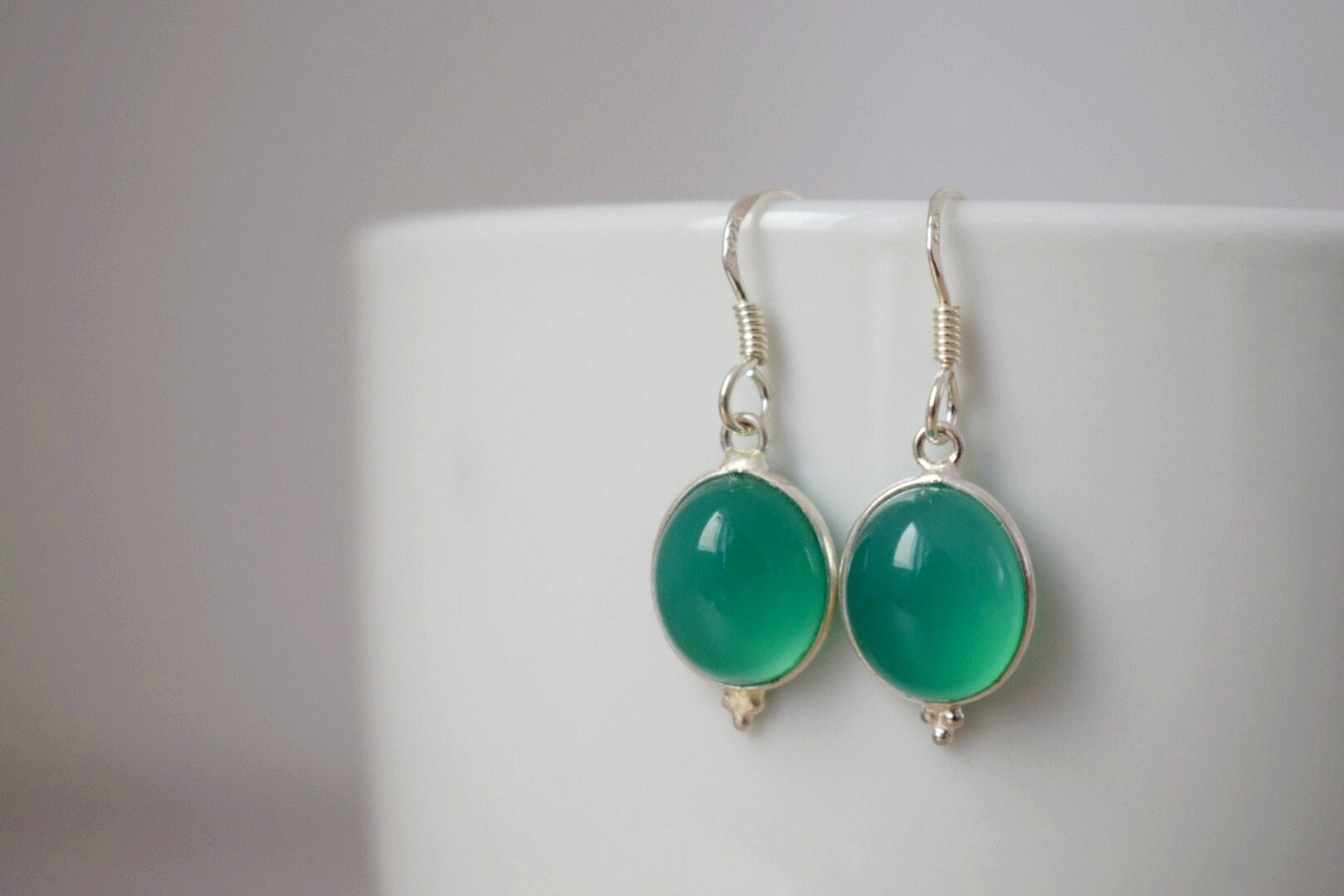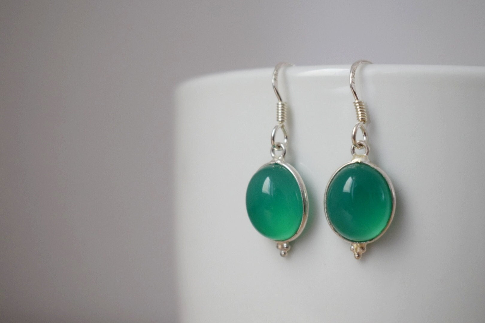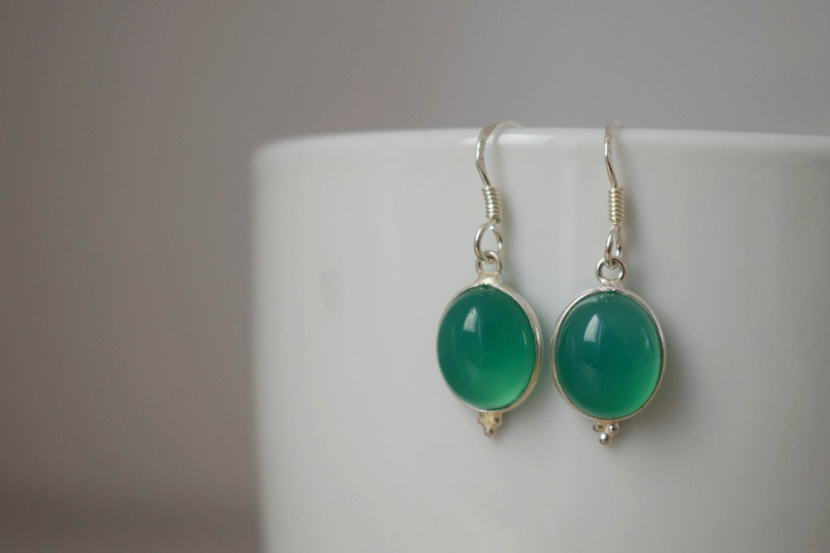 Green onyx earrings, 925 sterling silver, Oval gemstone earrings, Natural stone, Unique silver jewelry, Best valentine's day gift for her