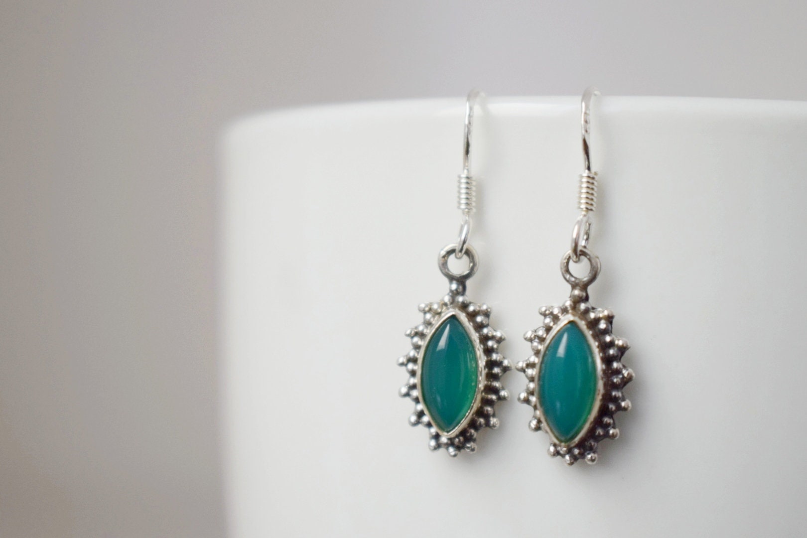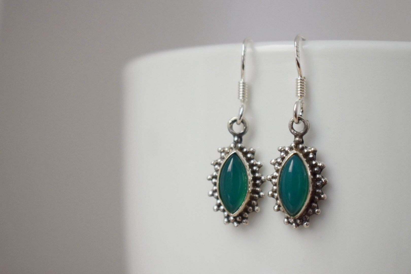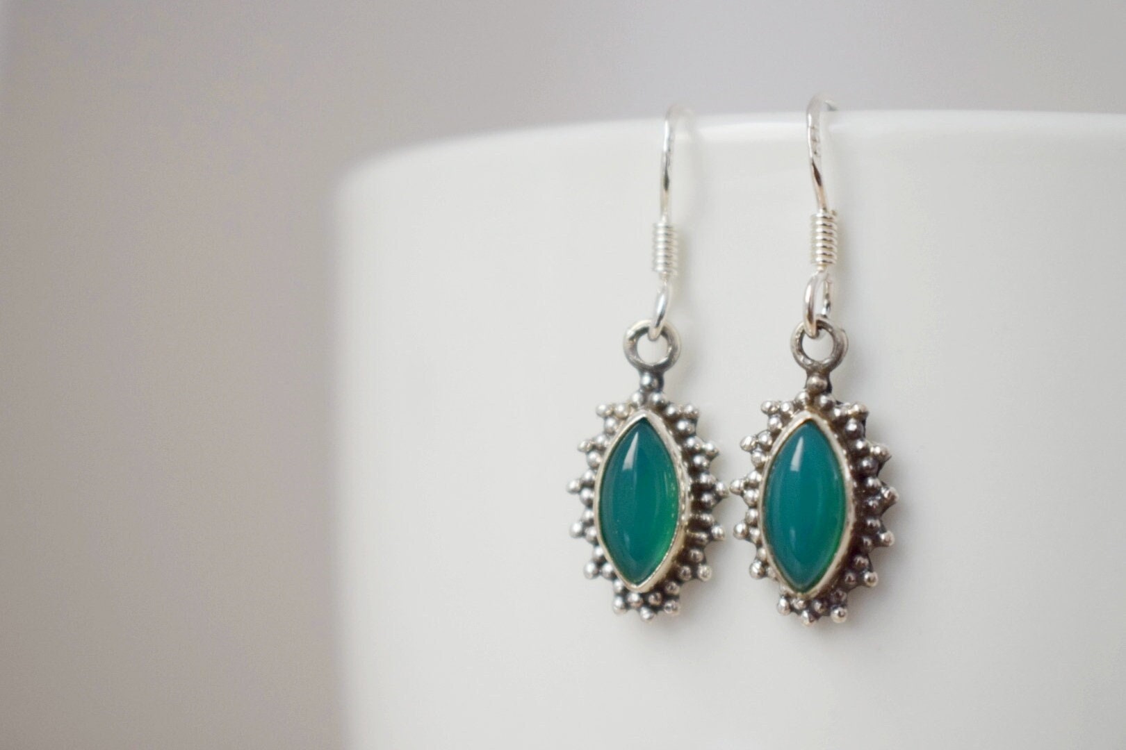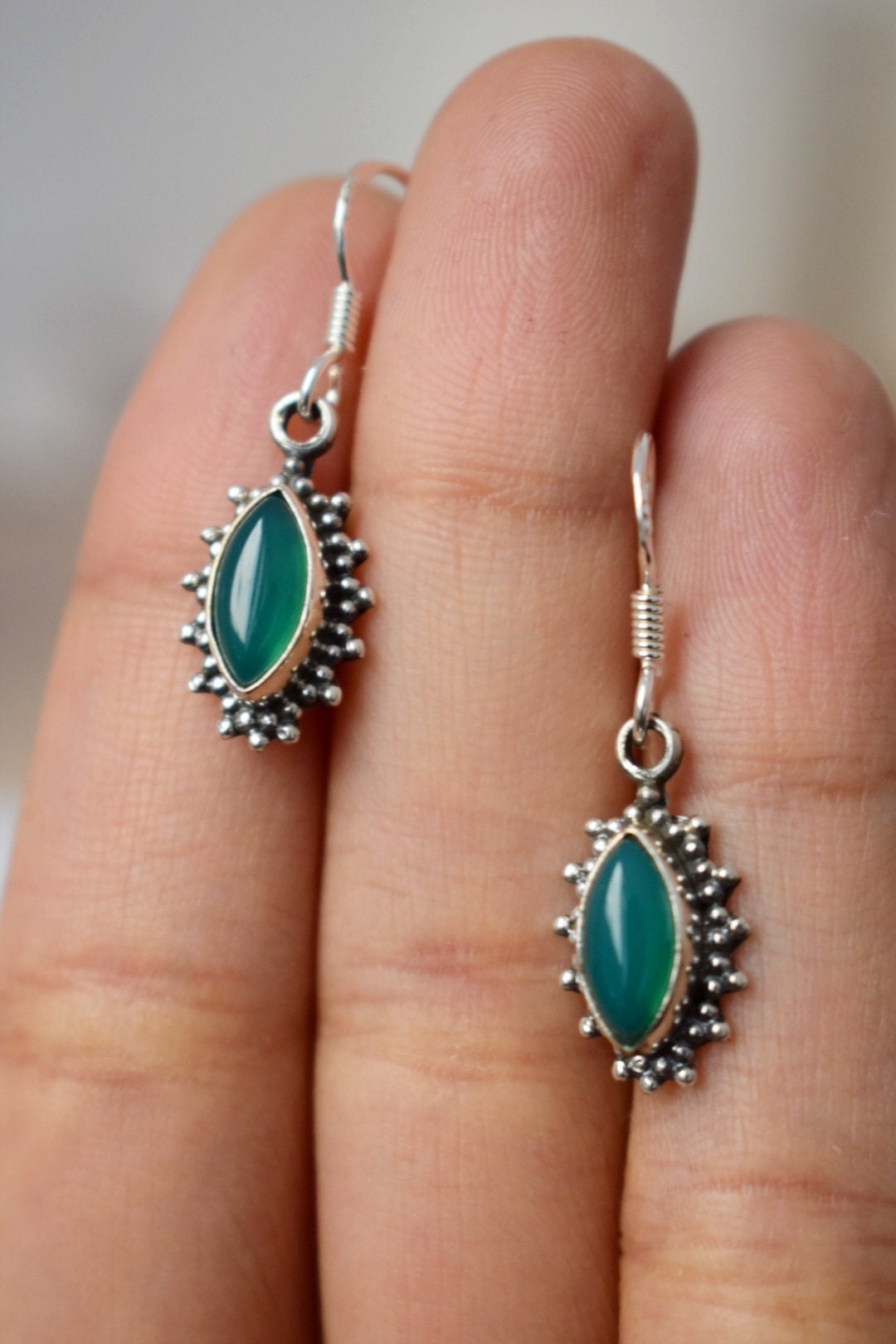 Green onyx earrings in sterling silver, Handmade gemstone dangle earrings, Boho earrings, Delicate natural green onyx earrings, Gift jewelry