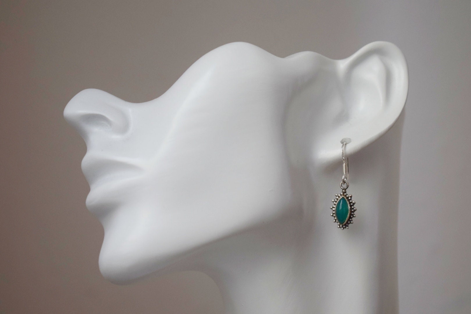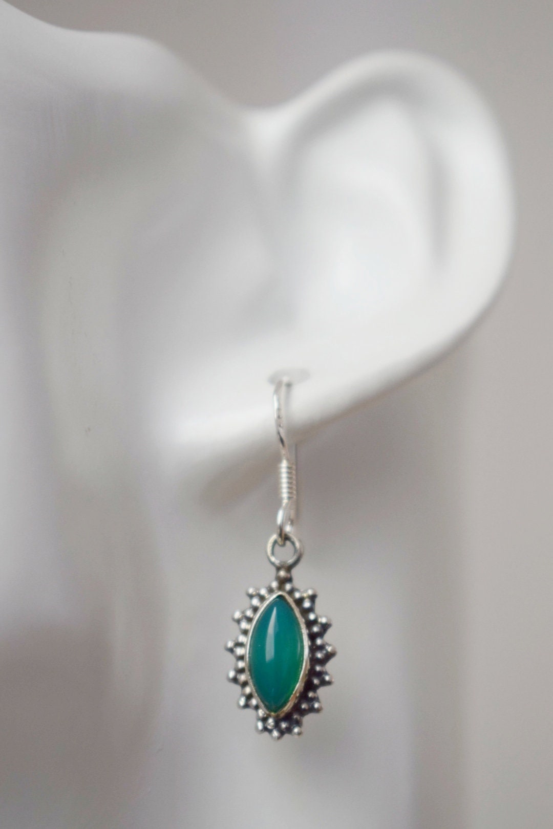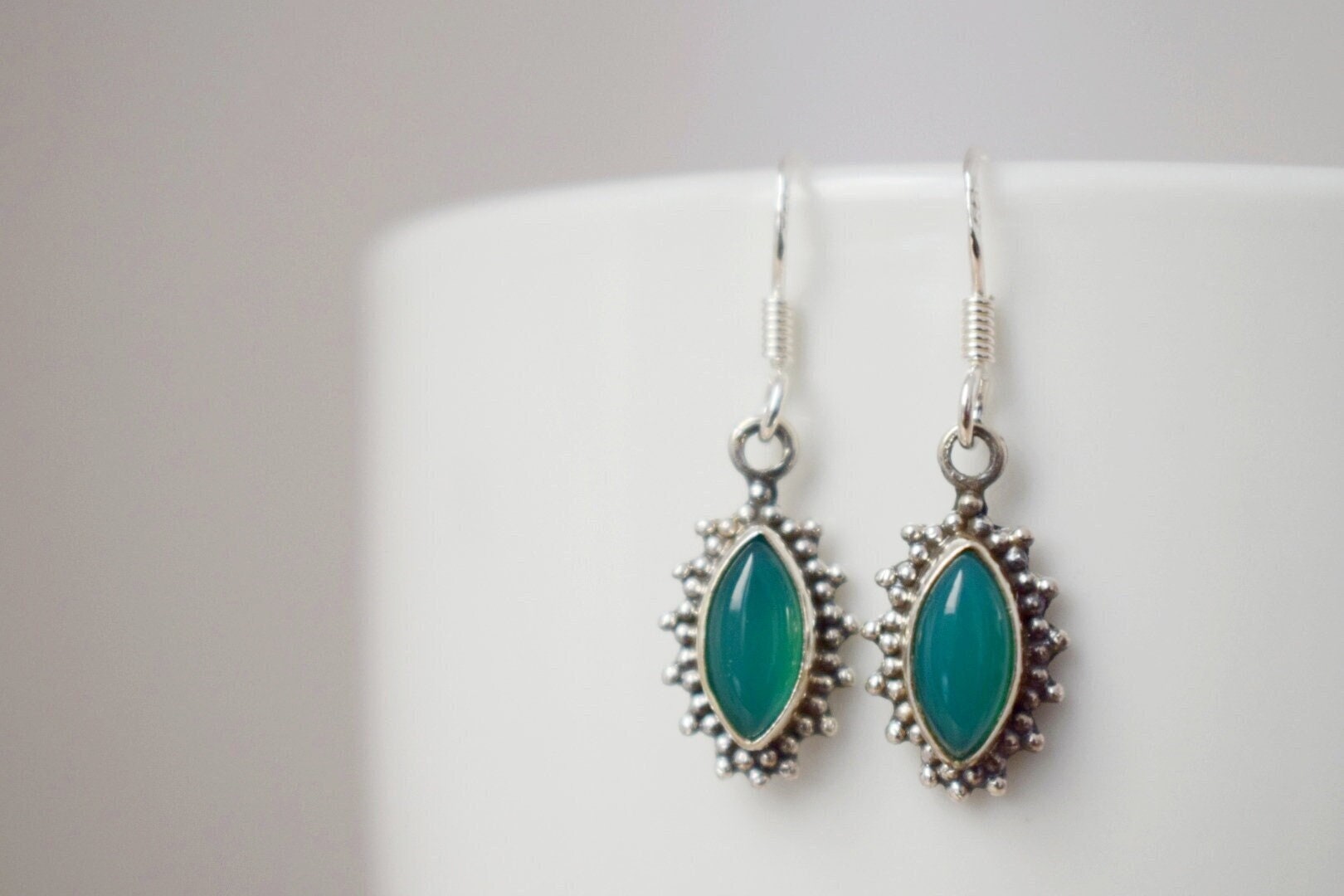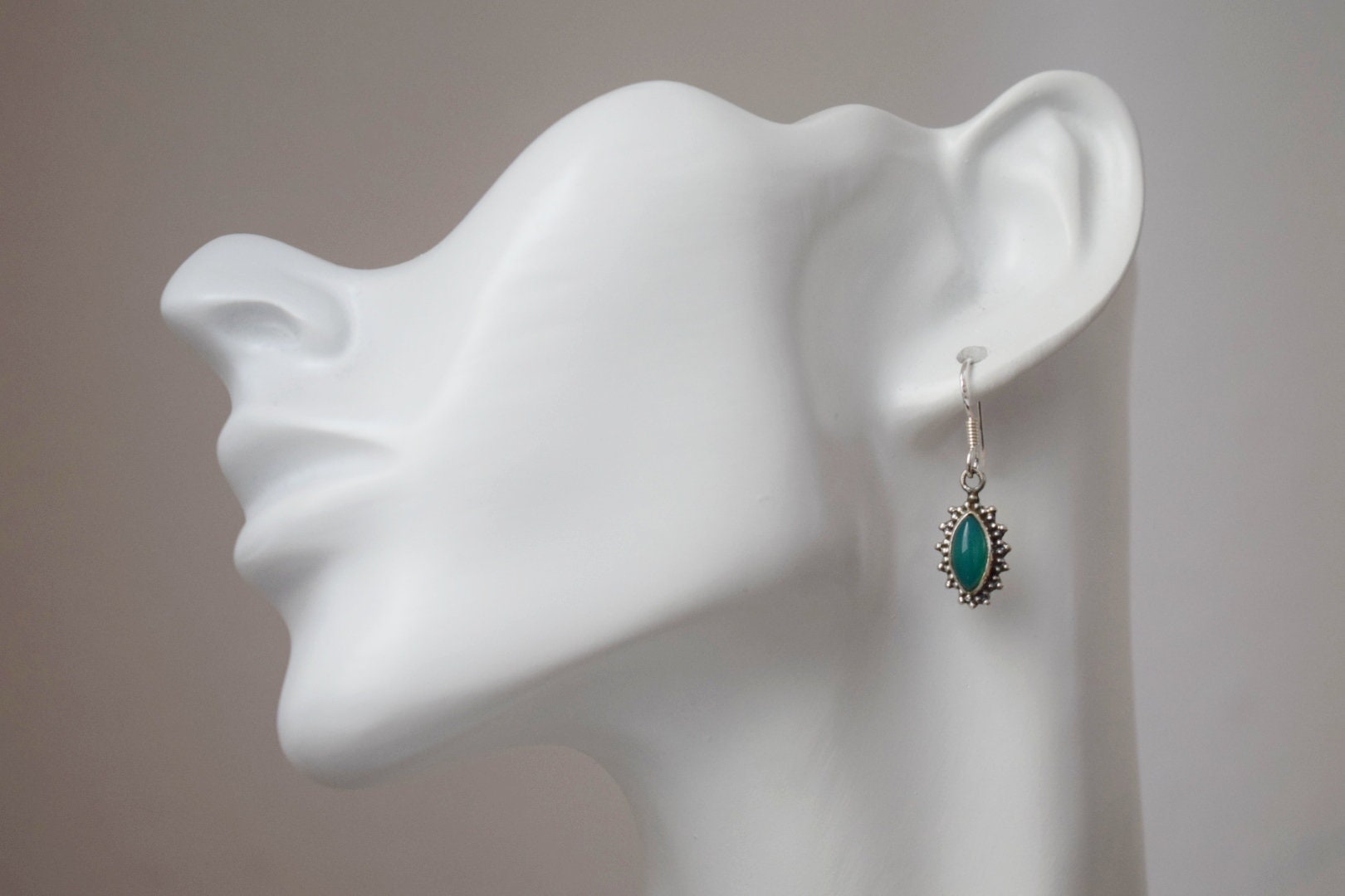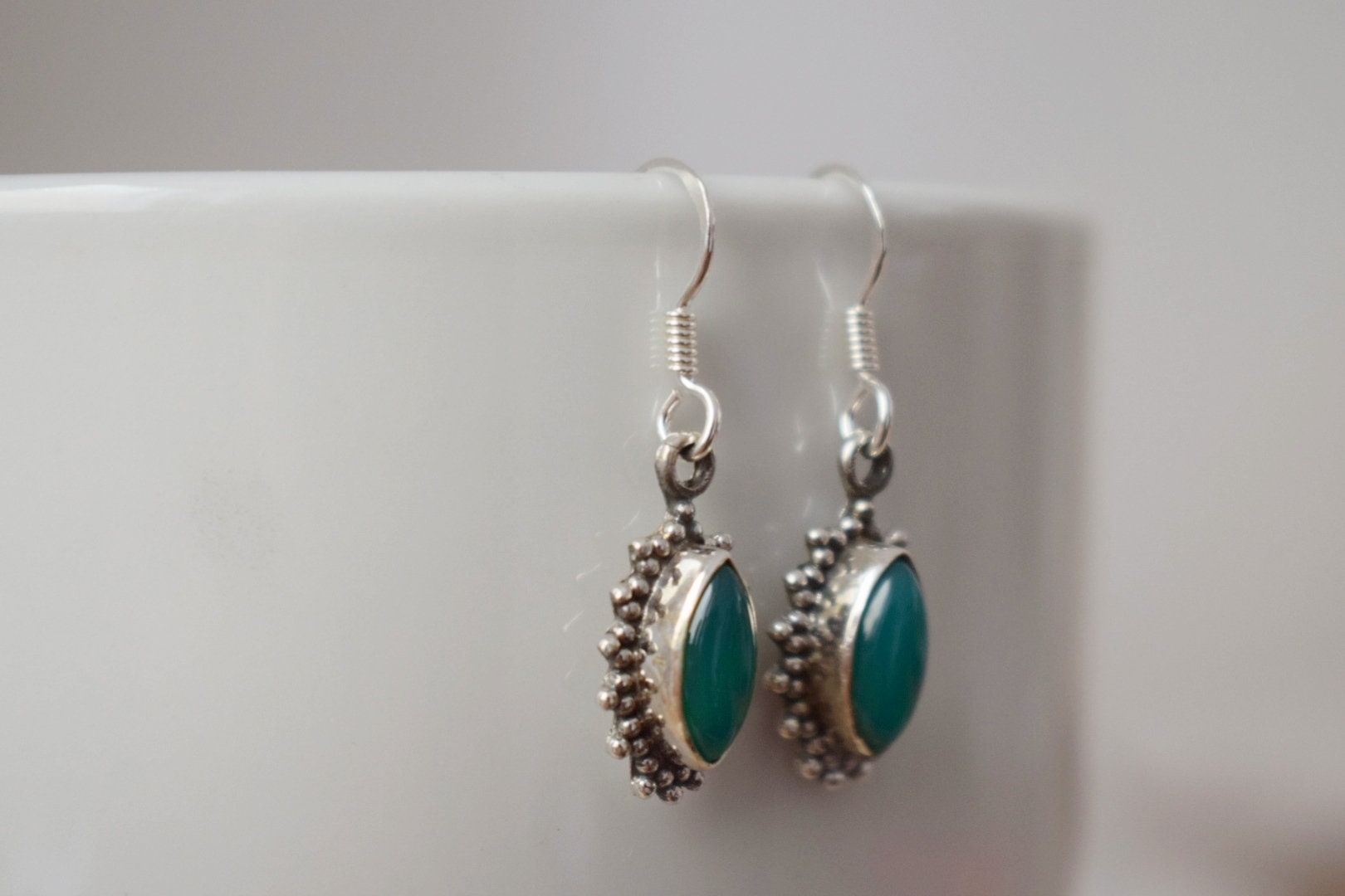 Green onyx earrings in sterling silver, Handmade gemstone dangle earrings, Boho earrings, Delicate natural green onyx earrings, Gift jewelry