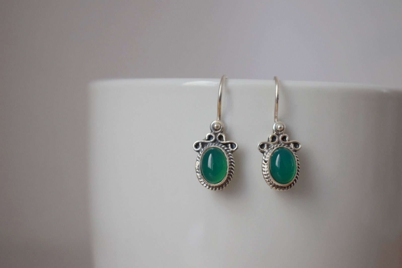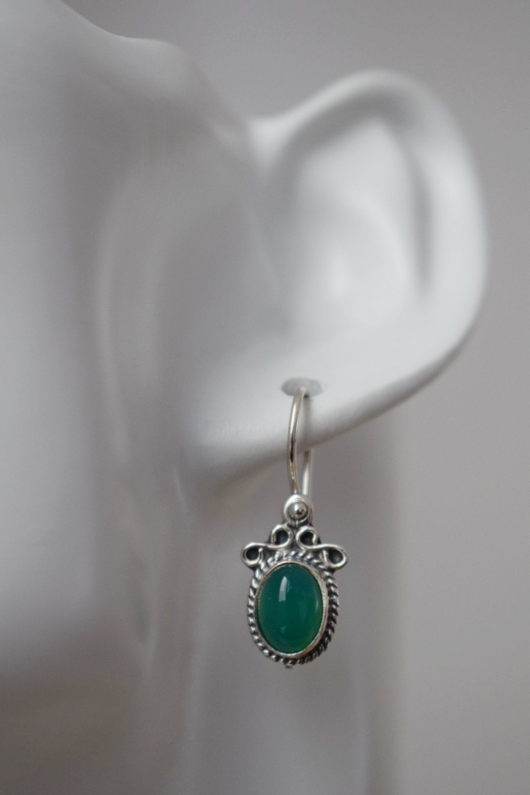 Green onyx earrings sterling silver, Boho gemstone earrings, Lightweight ornament earrings, Unique natural stone jewelry, Christmas gift