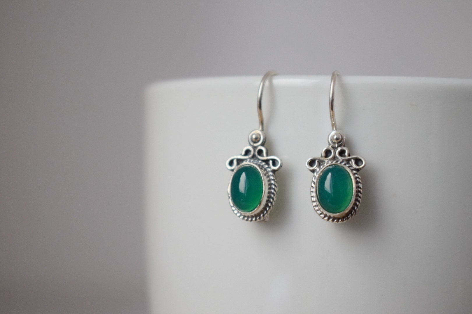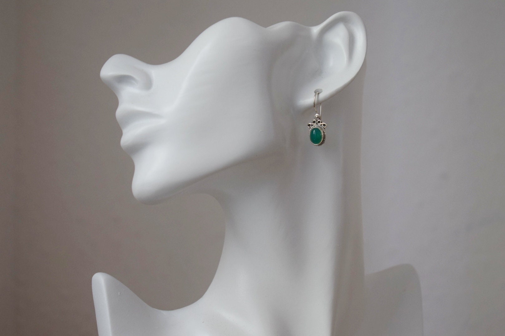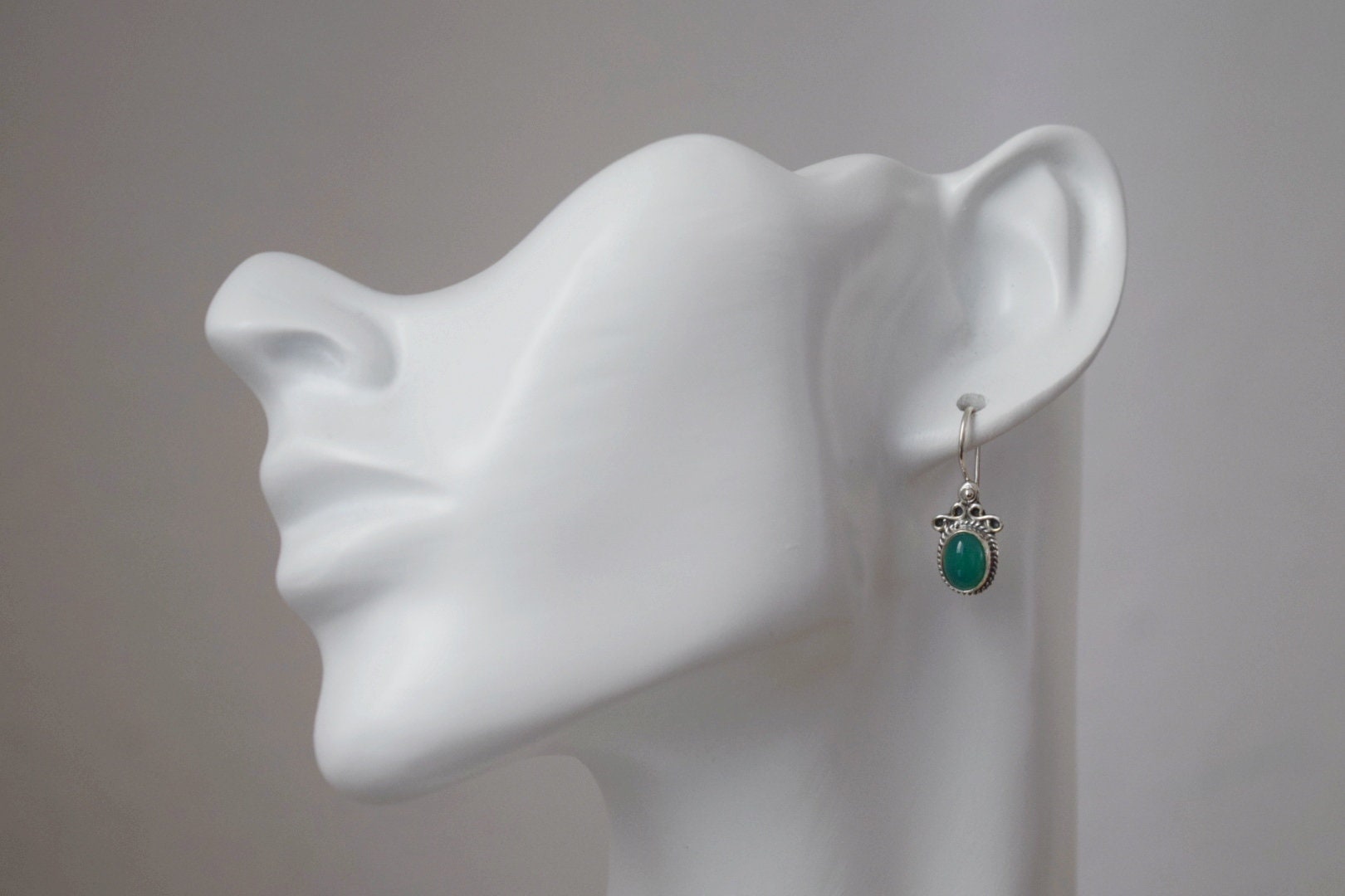 Green onyx ears in 925 sterling silver, Oval gemstone ears, Ornament ears, Unique silver jewelry