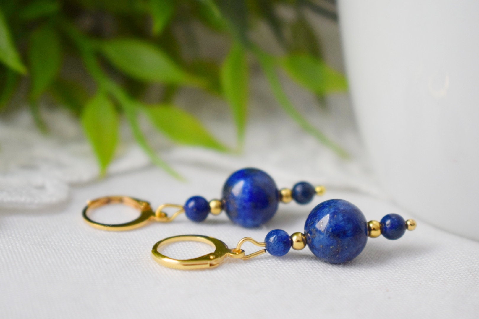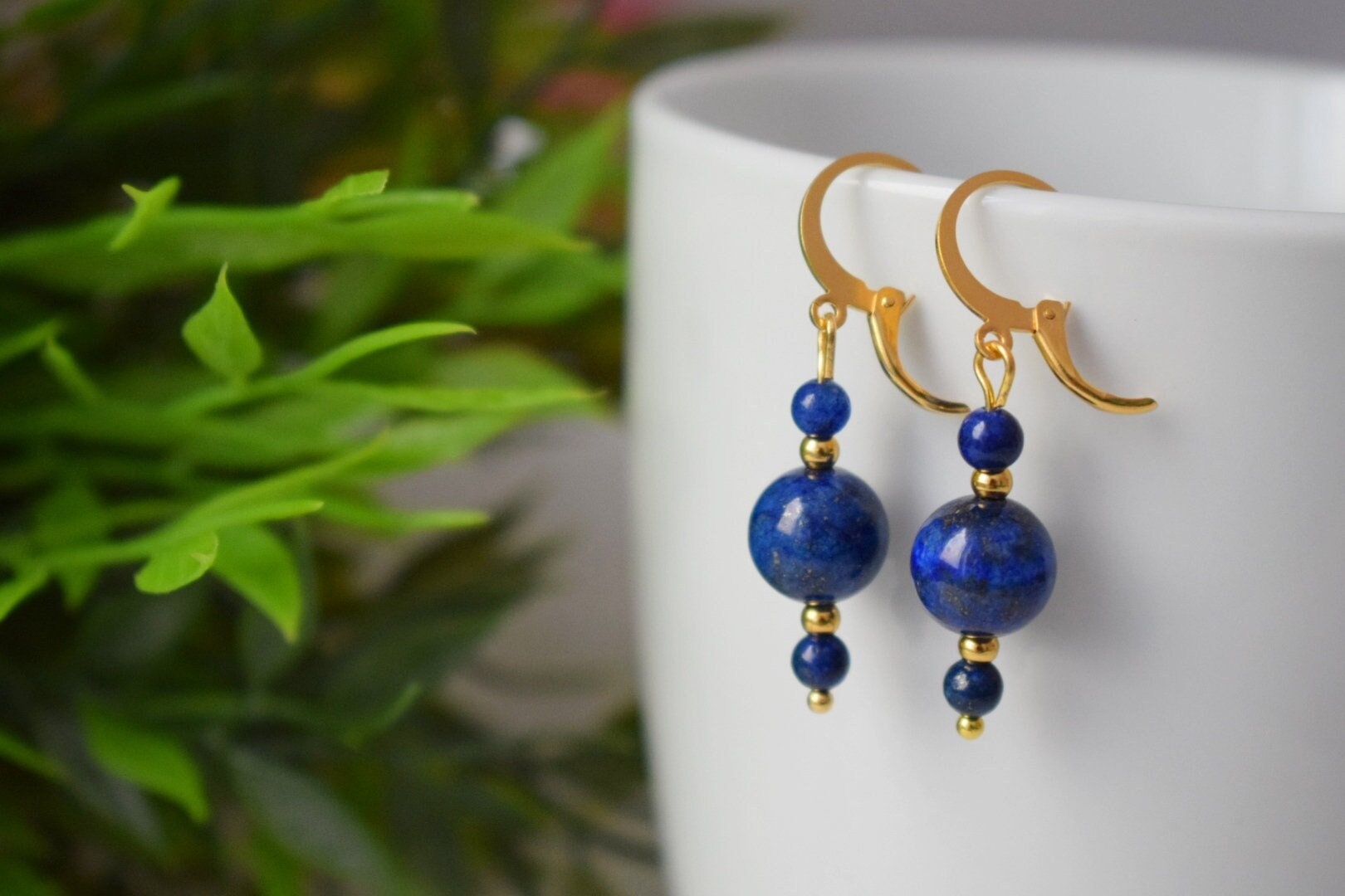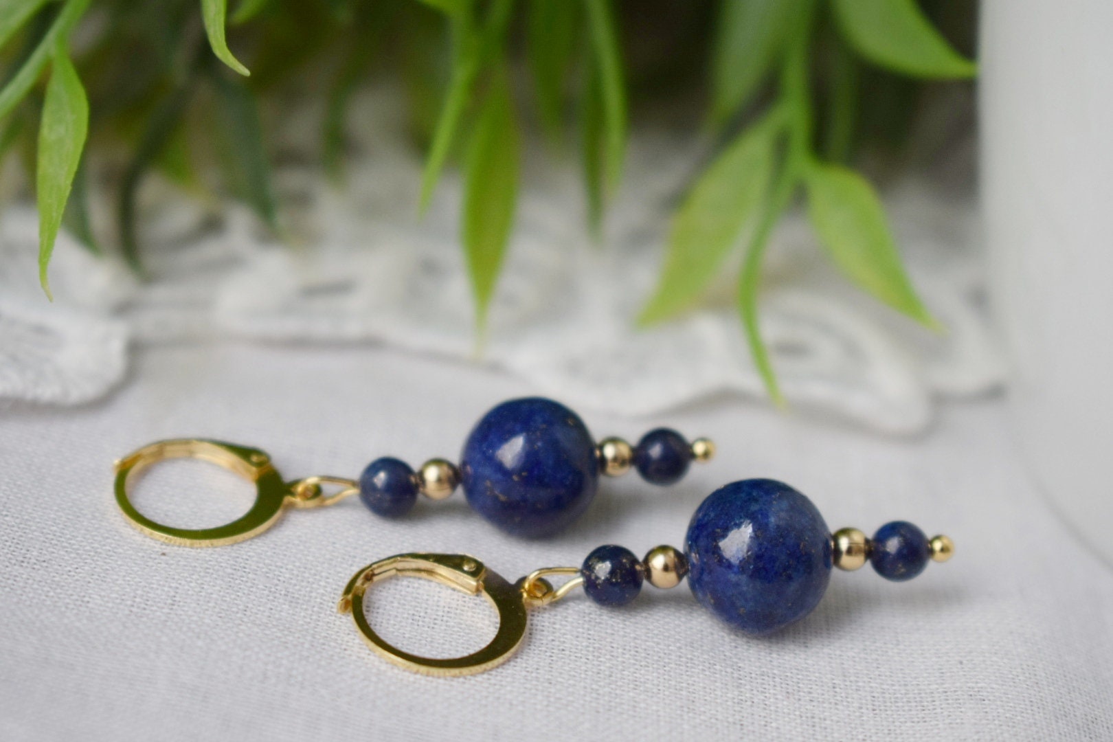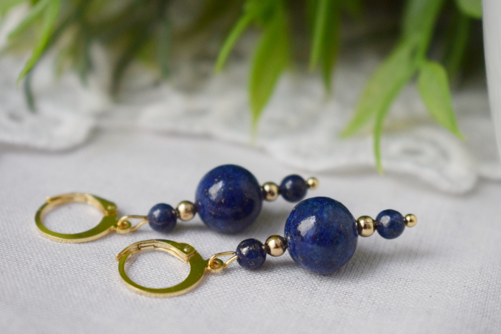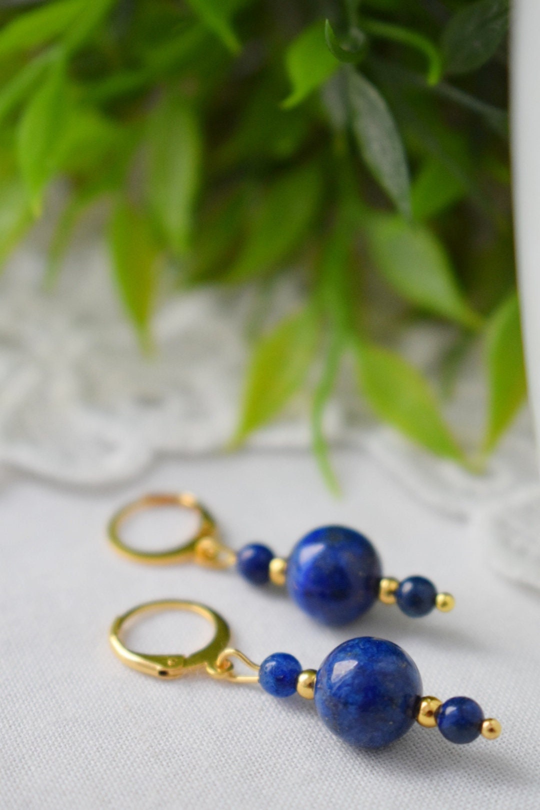 Lapis lazuli ears, Lapis bead dangle ears, Dark Blue gold colour small ears, Gemstone, September Birthstone Jewelry, Gift for her