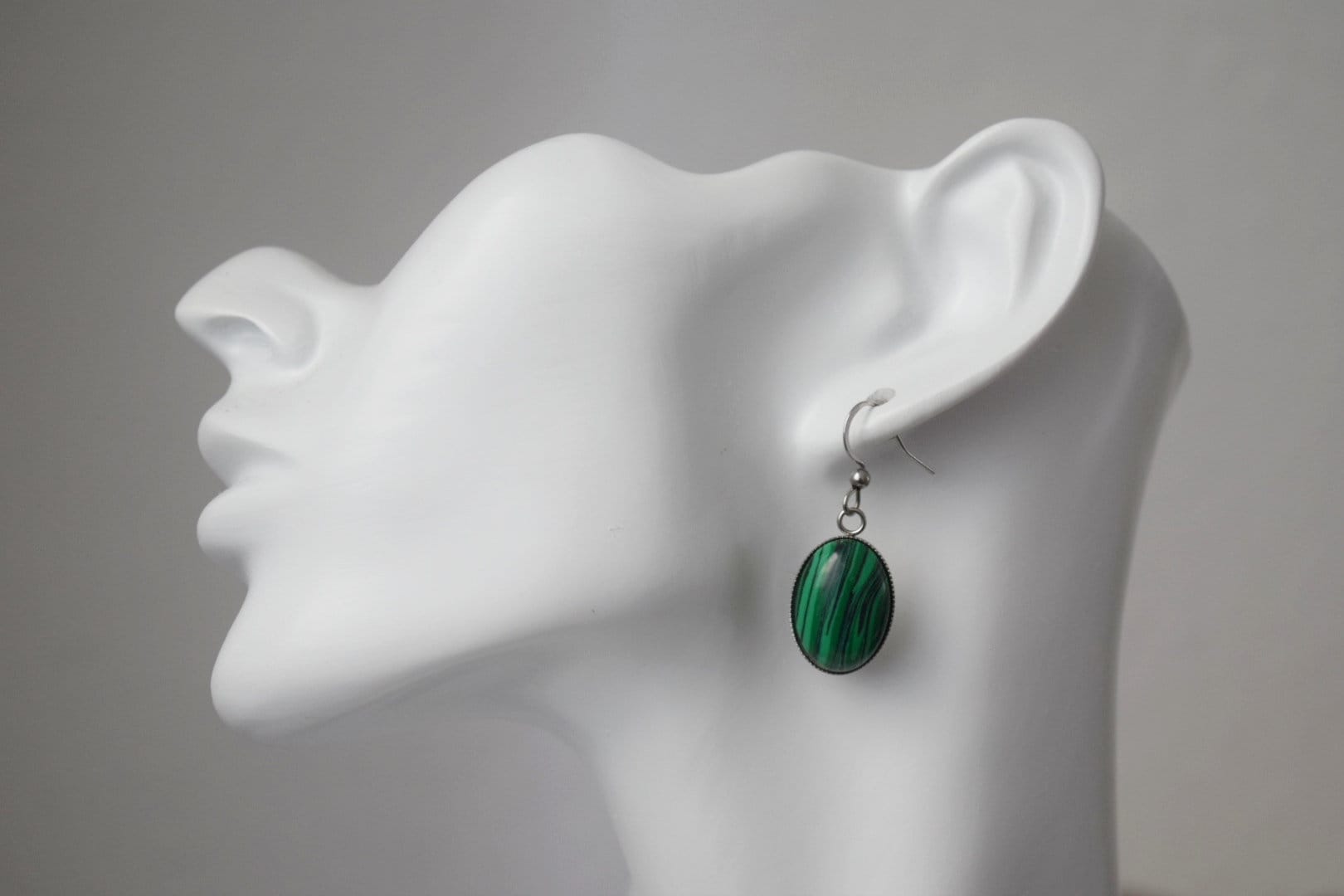 Malachite dangle earrings, Oval green gemstone pendant with stainless steel earrings hooks, Boho jewelry, Christmas gift for her