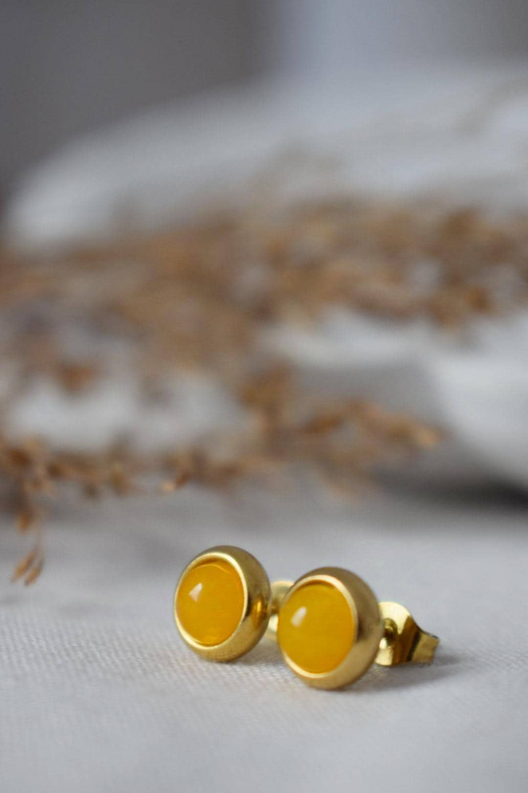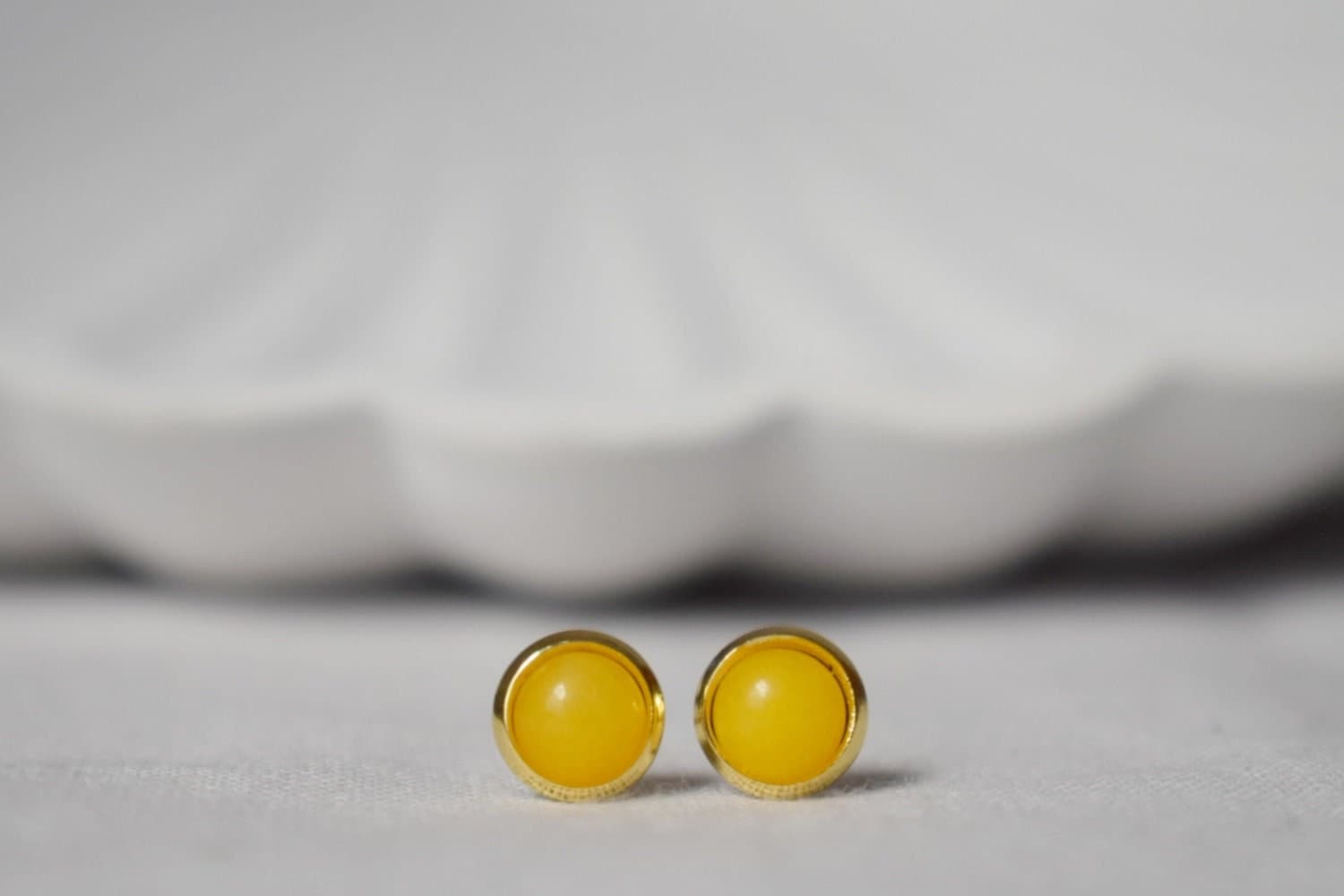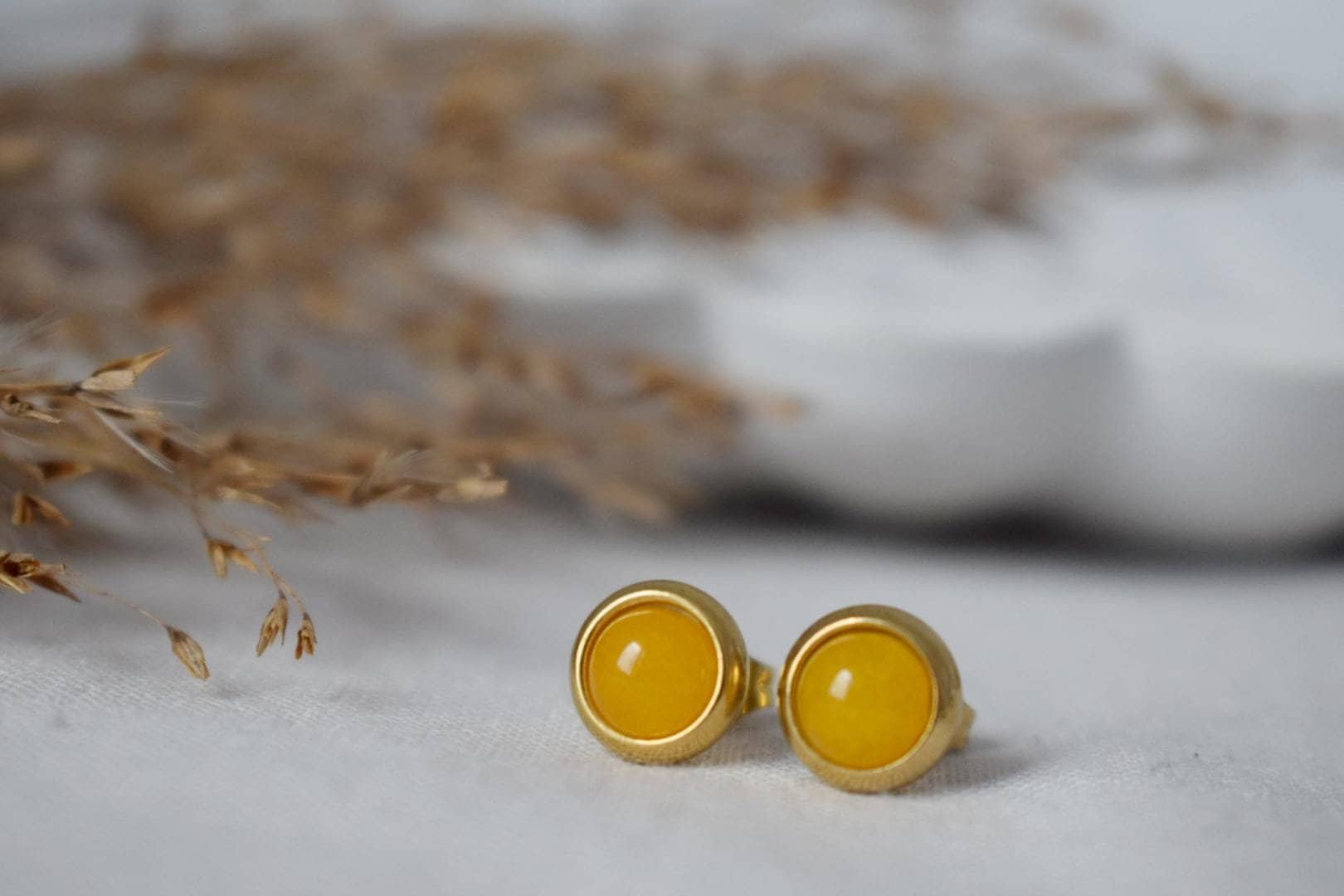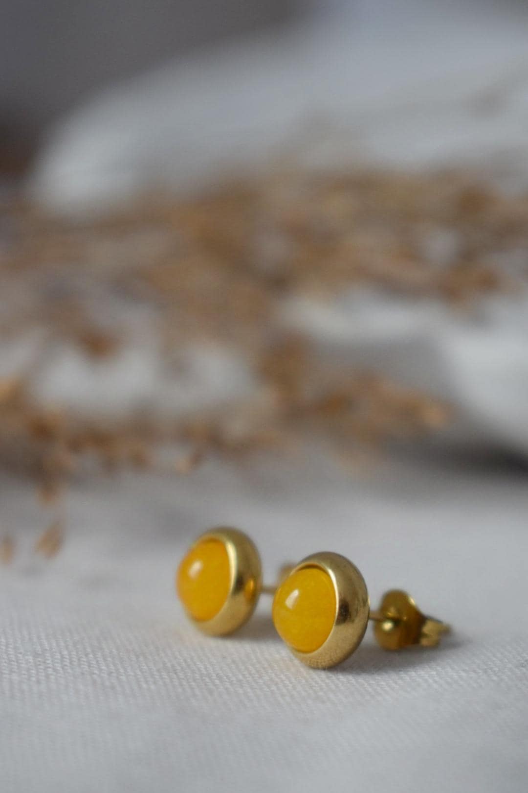 Mini Yellow Jade Stud Earrings, Small gemstone push back earrings, Everyday post earrings, Gold yellow stone, Minimalist jewelry gift women