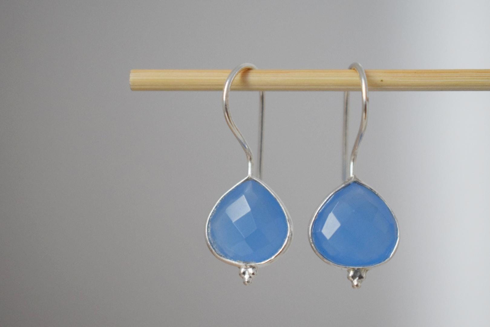 Christmas jewellery gifts, Blue Chalcedony earrings in 925 sterling silver, Teardrop gemstone, Natural stone, Unique jewelry, gift for her