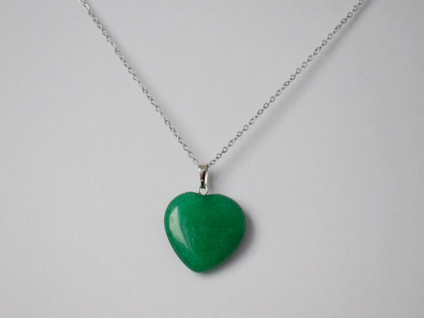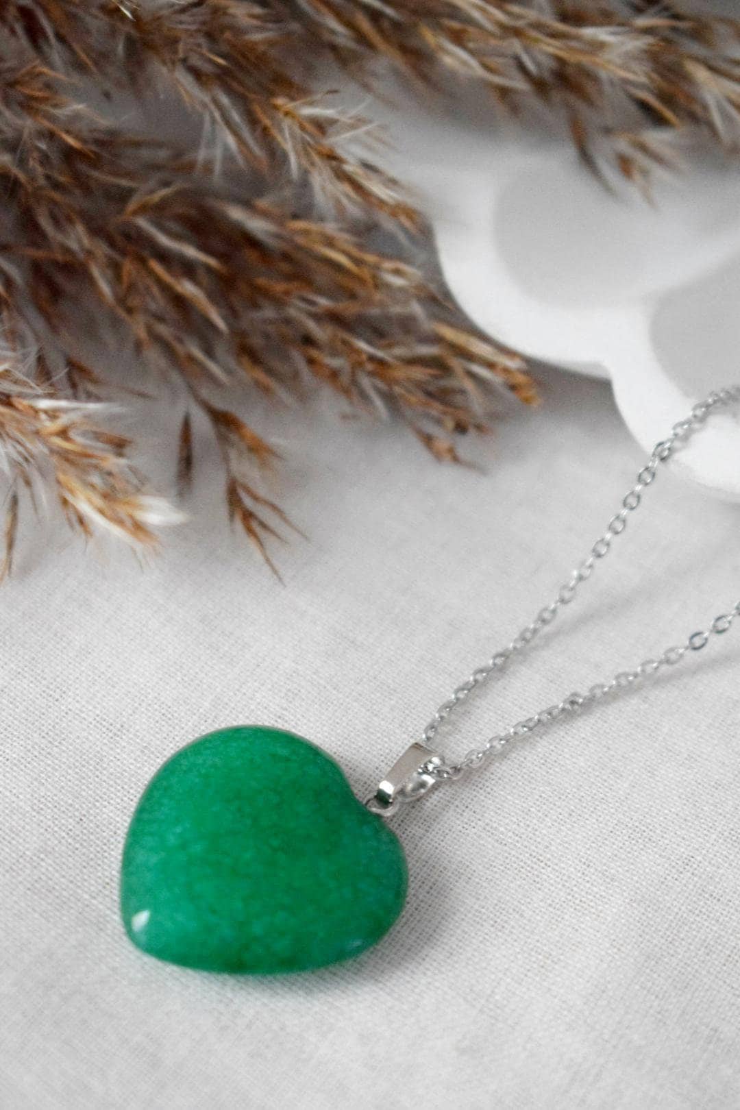 Natural Green jade heart necklace, Gemstone pendant, Long stone necklace, Handmade jewelry, Best gift for her, Christmas gift