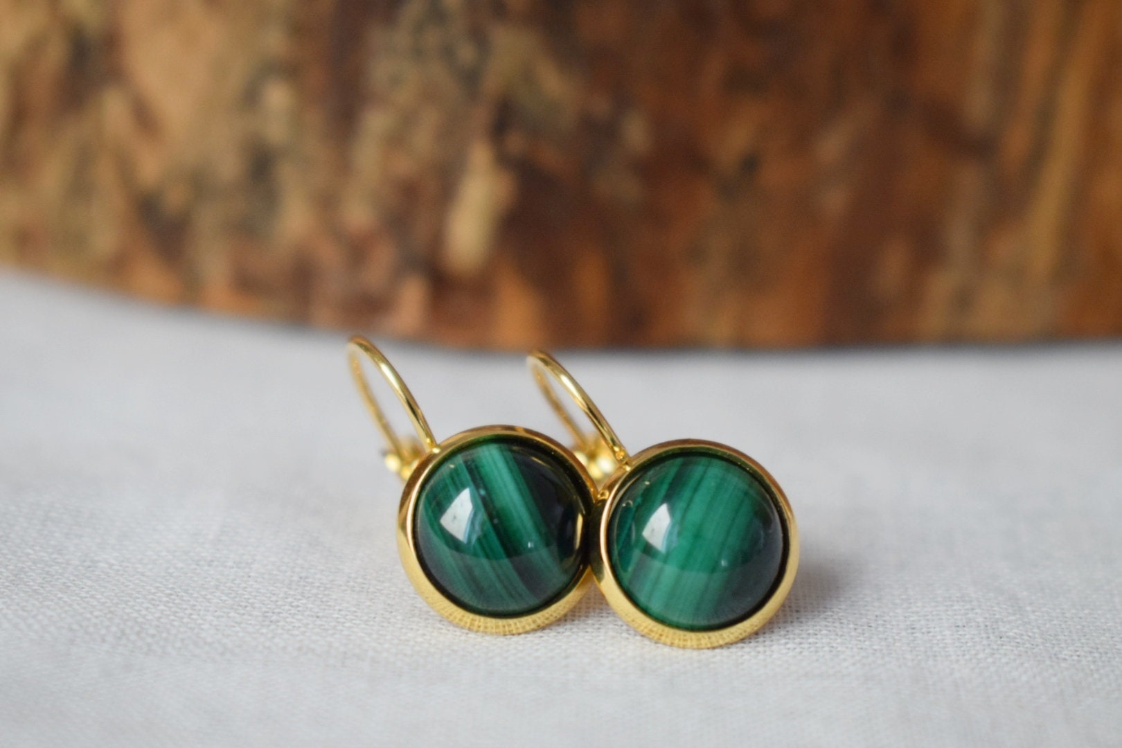 Natural Malachite Ears Gold, 10mm Dangle Ears, Small, Minimalist, Green Gemstone, Lever back, Malachite Jewelry, Birthstone Ears