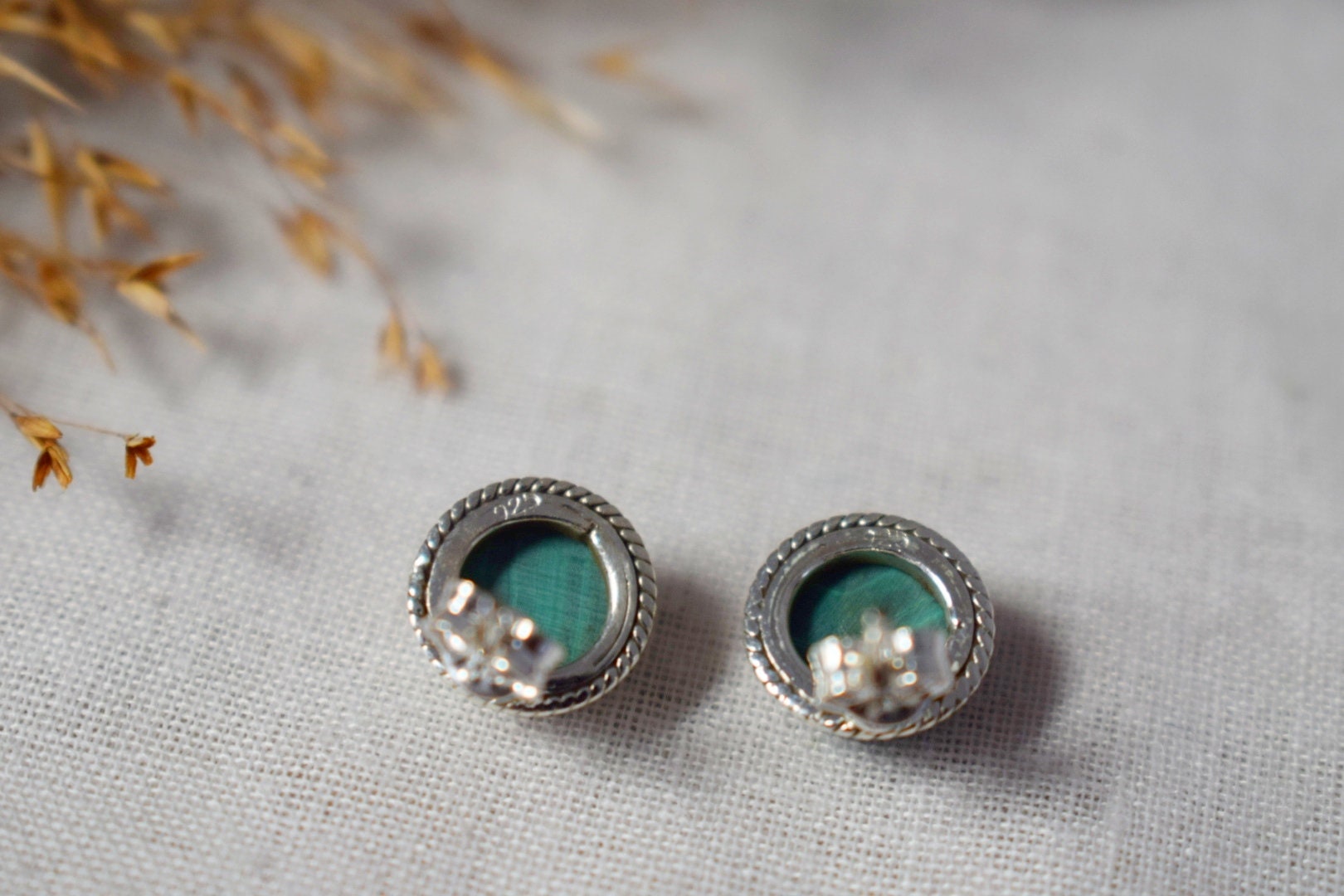 Handmade Natural Malachite Stud ears in 925 sterling silver"