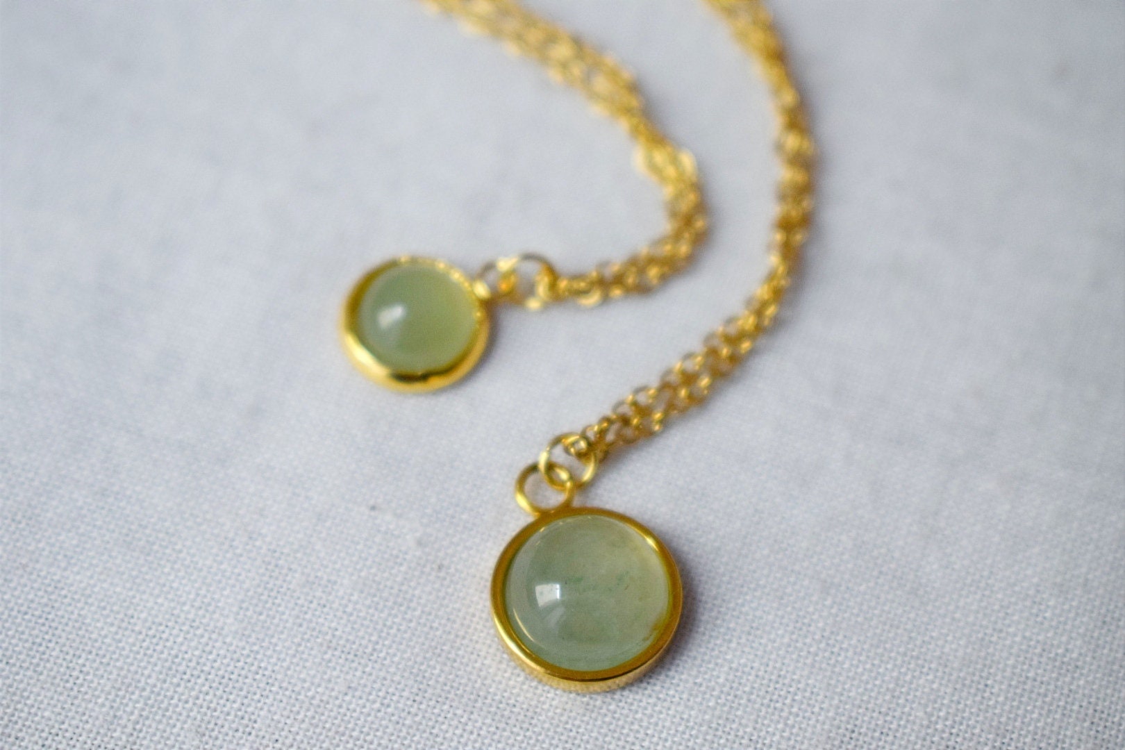 Necklace Green Aventurine, Small Gemstone Golden Pendant, Natural Stone Layered Necklace, 18k Gold Plated Jewelry, Elegant Gift For Her