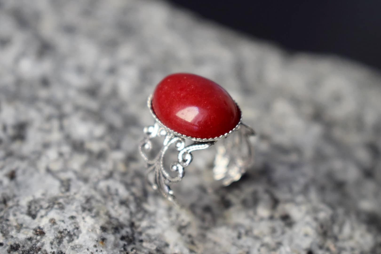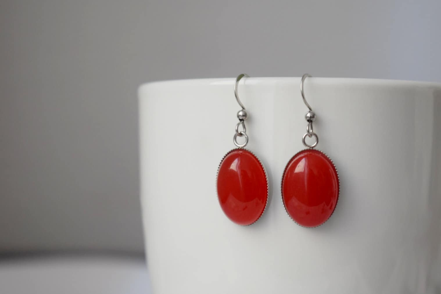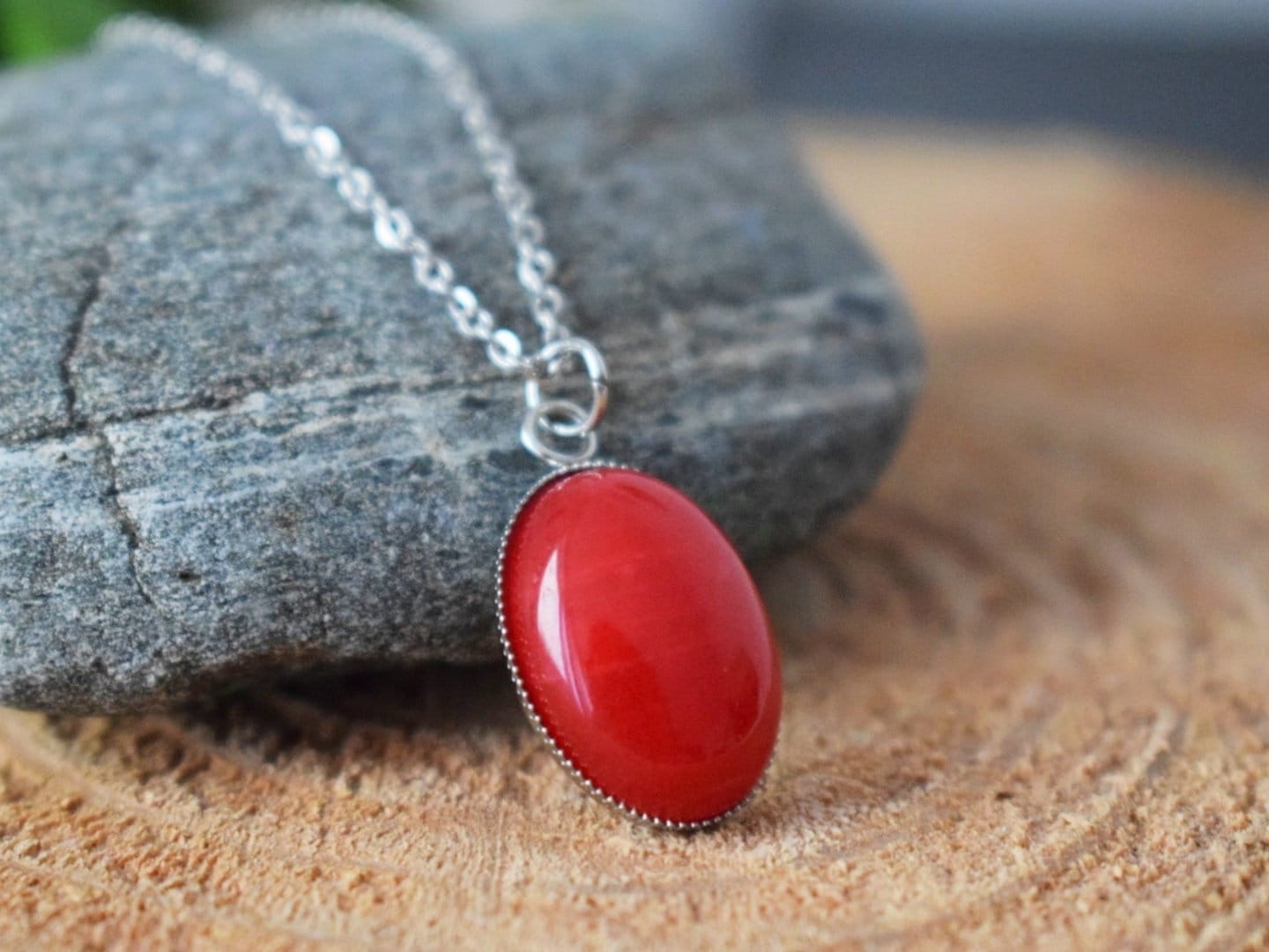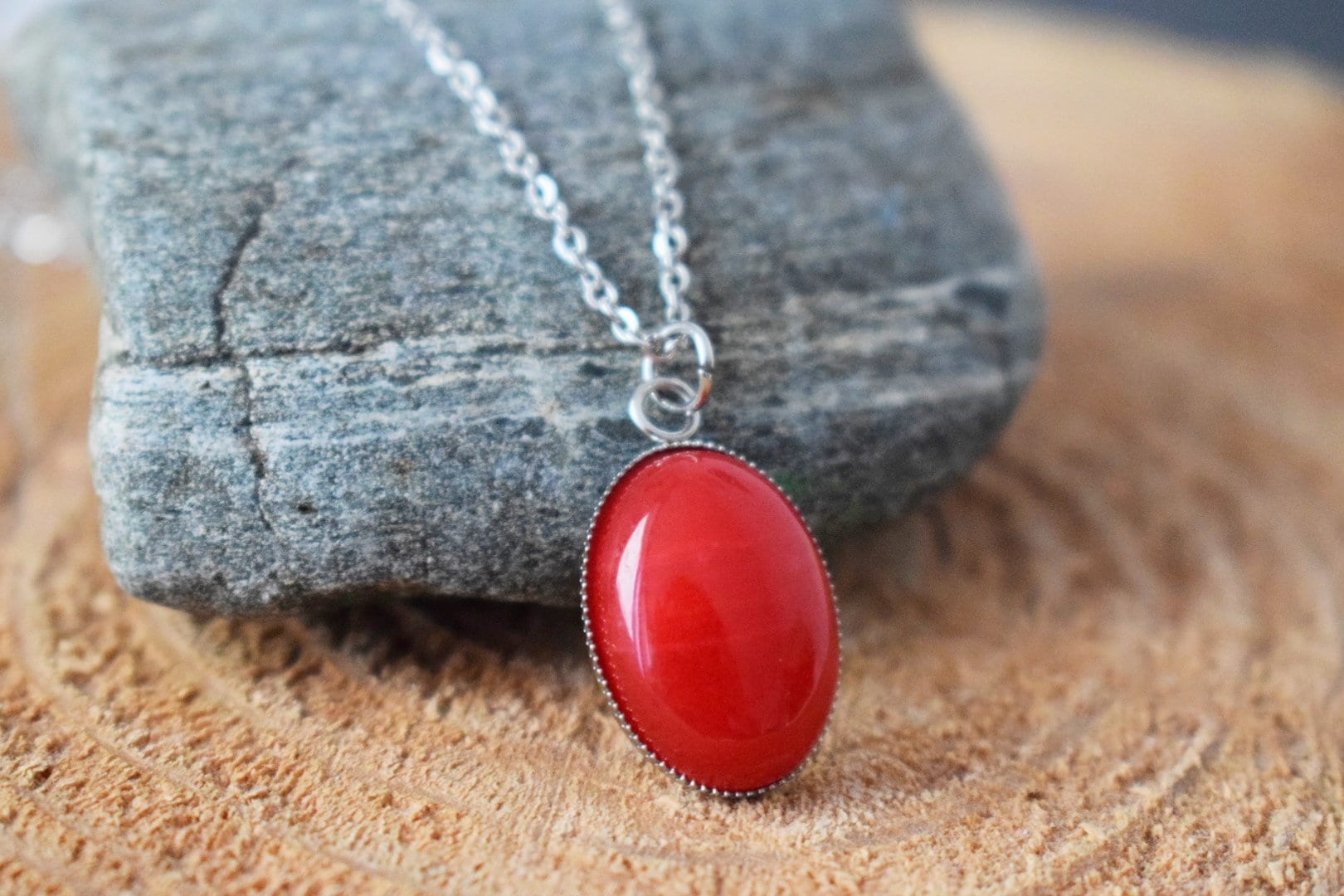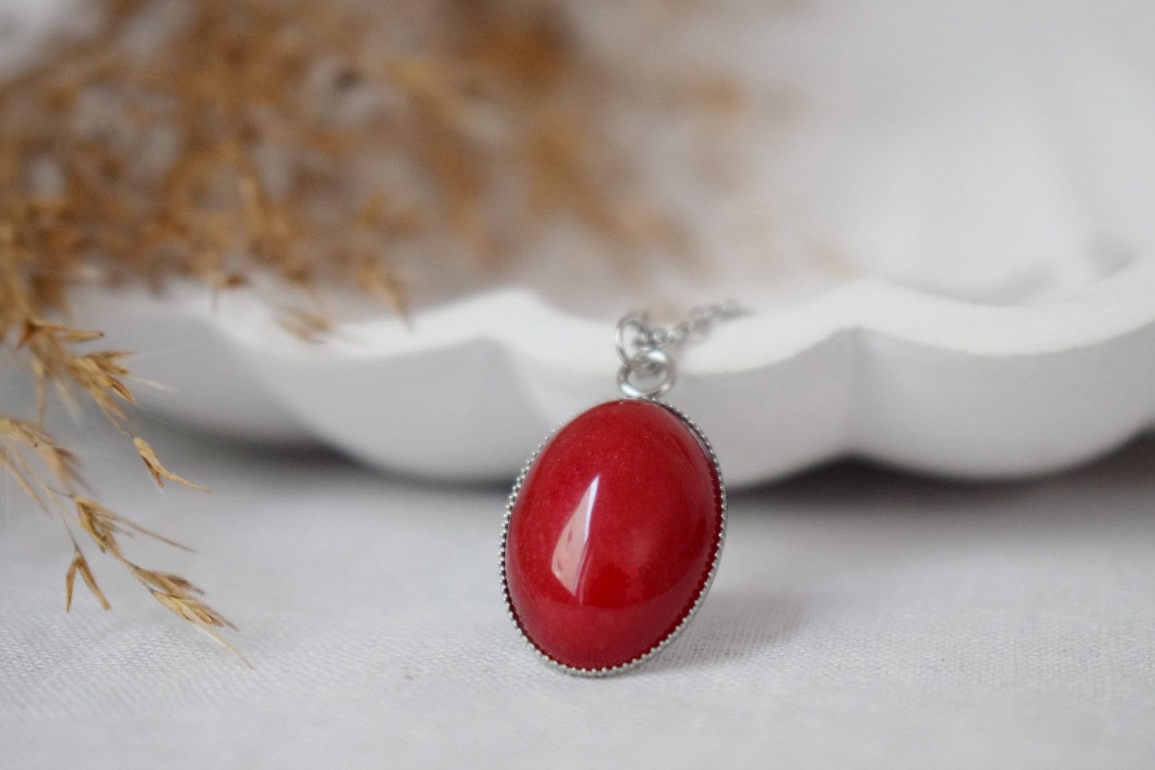 Handmade beautiful oval gemstone necklace with jade in elegant red
