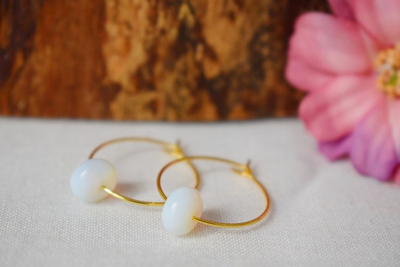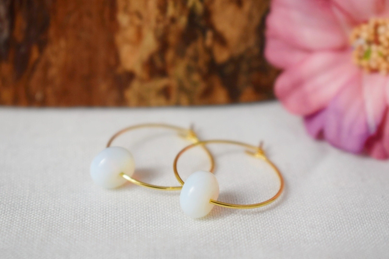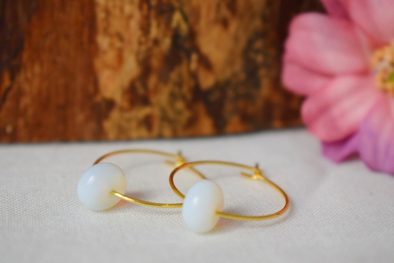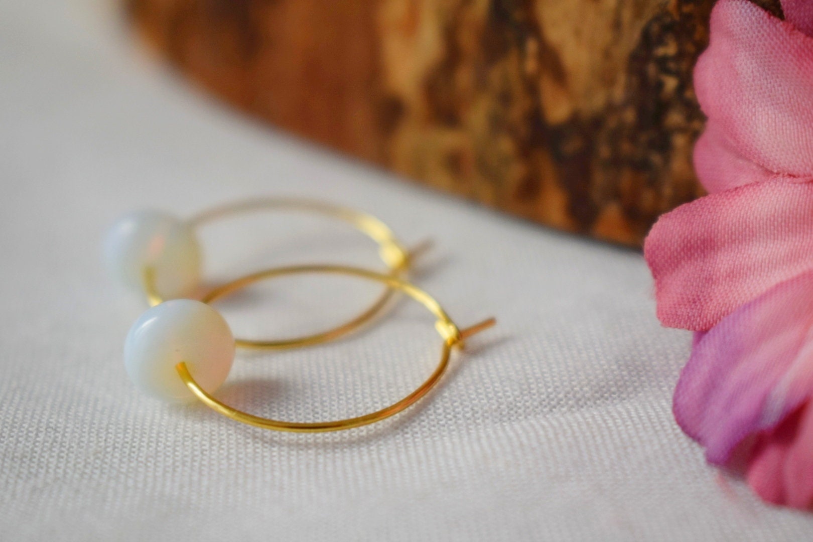 Opalite Hoop Earrings Gold, Opalite moonstone, Gemstone 20mm Hoops, Minimalist jewelry, 18k gold plated stainless steel, Gift For Her