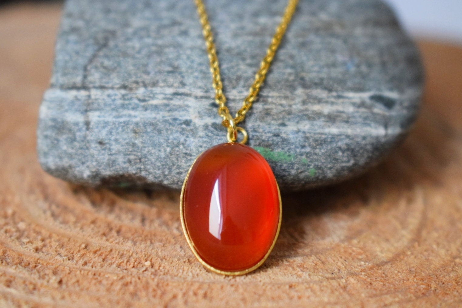 Red Agate Necklace Gold, Oval Red Orange Gemstone Necklace, Red Stone Pendant Necklace, Agate Jewelry, Handmade jewelry, Gift for women
