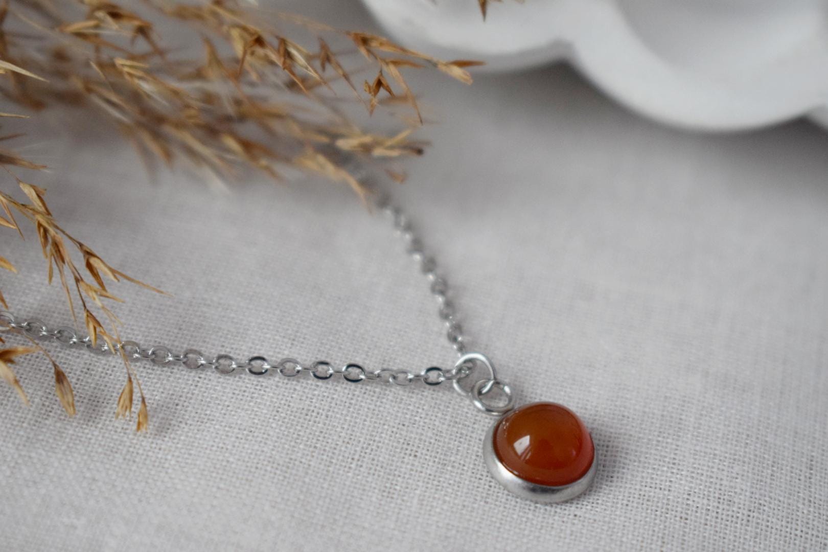 Red Agate Necklace, Simple Gemstone Pendant Necklace, Mini gemstone red necklace, Red agate jewelry, Handmade jewelry, Gift for her