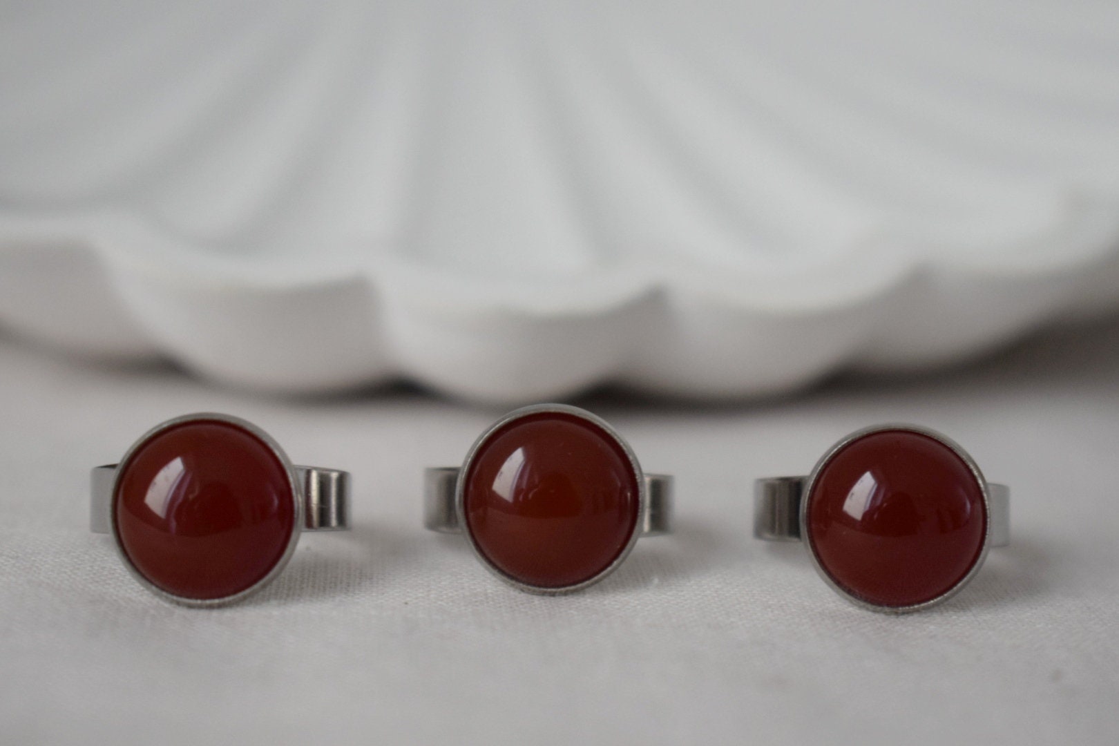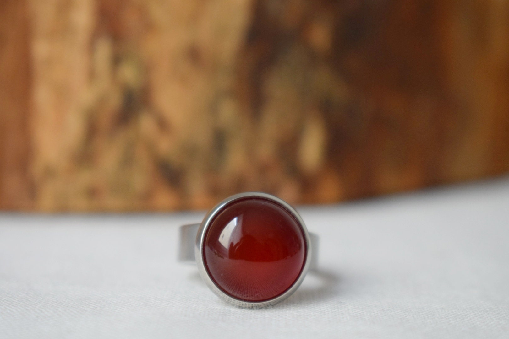 Red Agate Ring, Gemstone Adjustable Ring, Red stone Ring, Everyday Round Crystal Ring, Red agate Jewelry, Birthday Gift For Her
