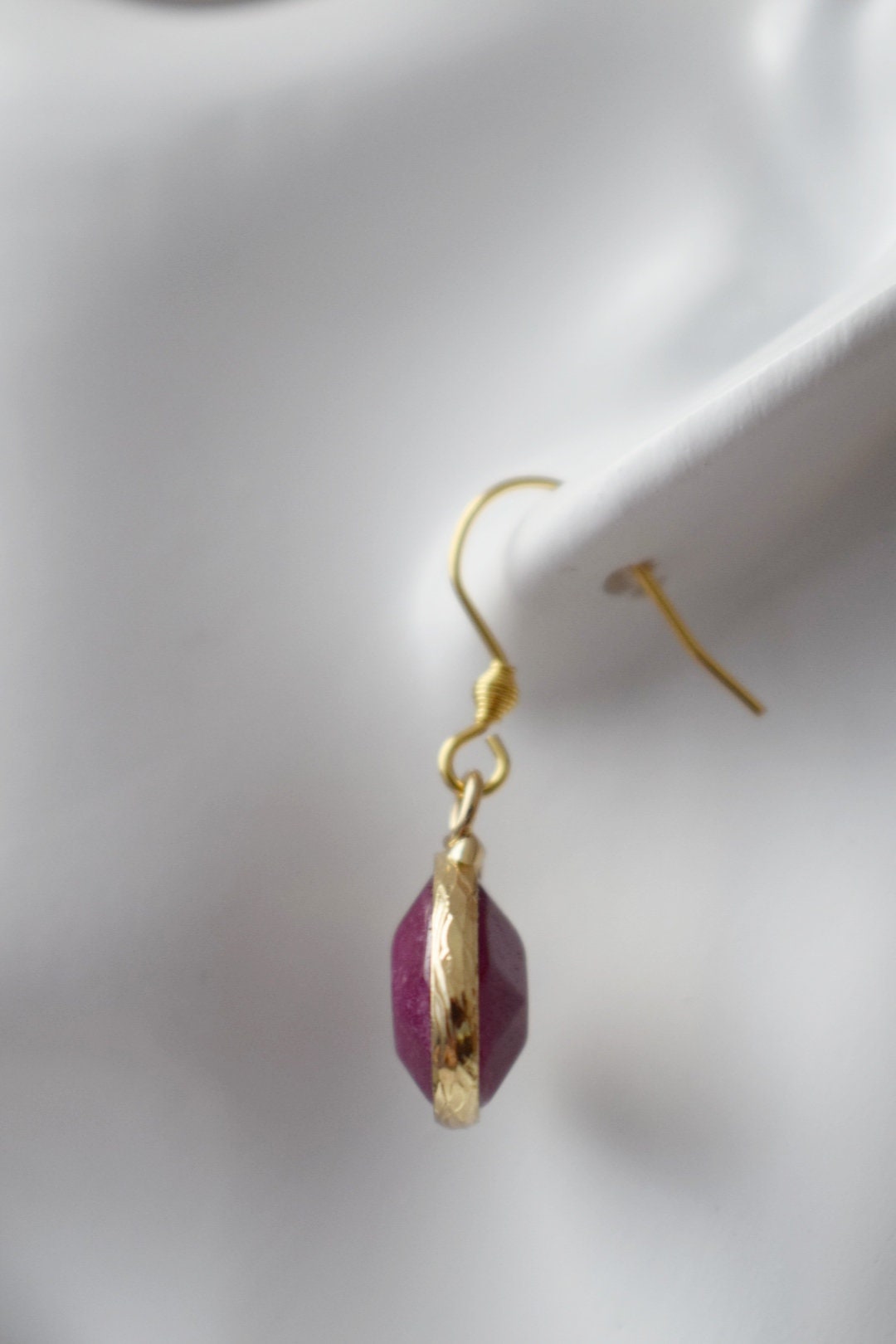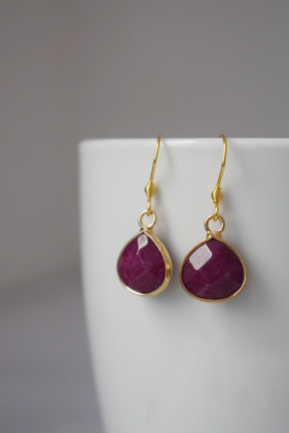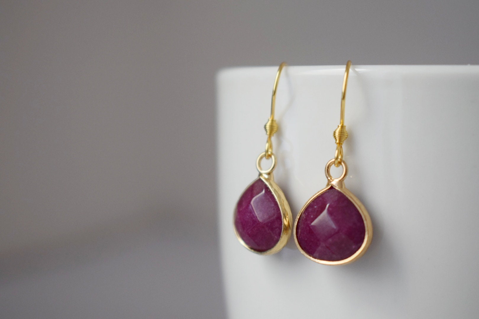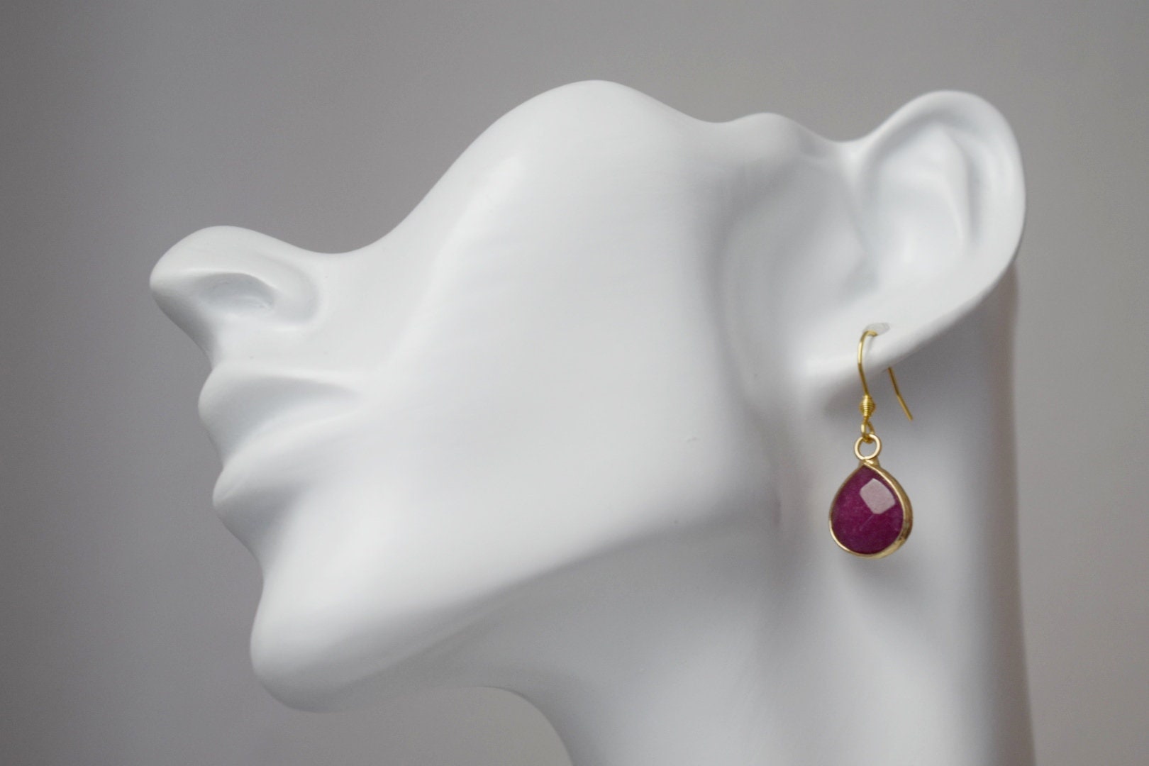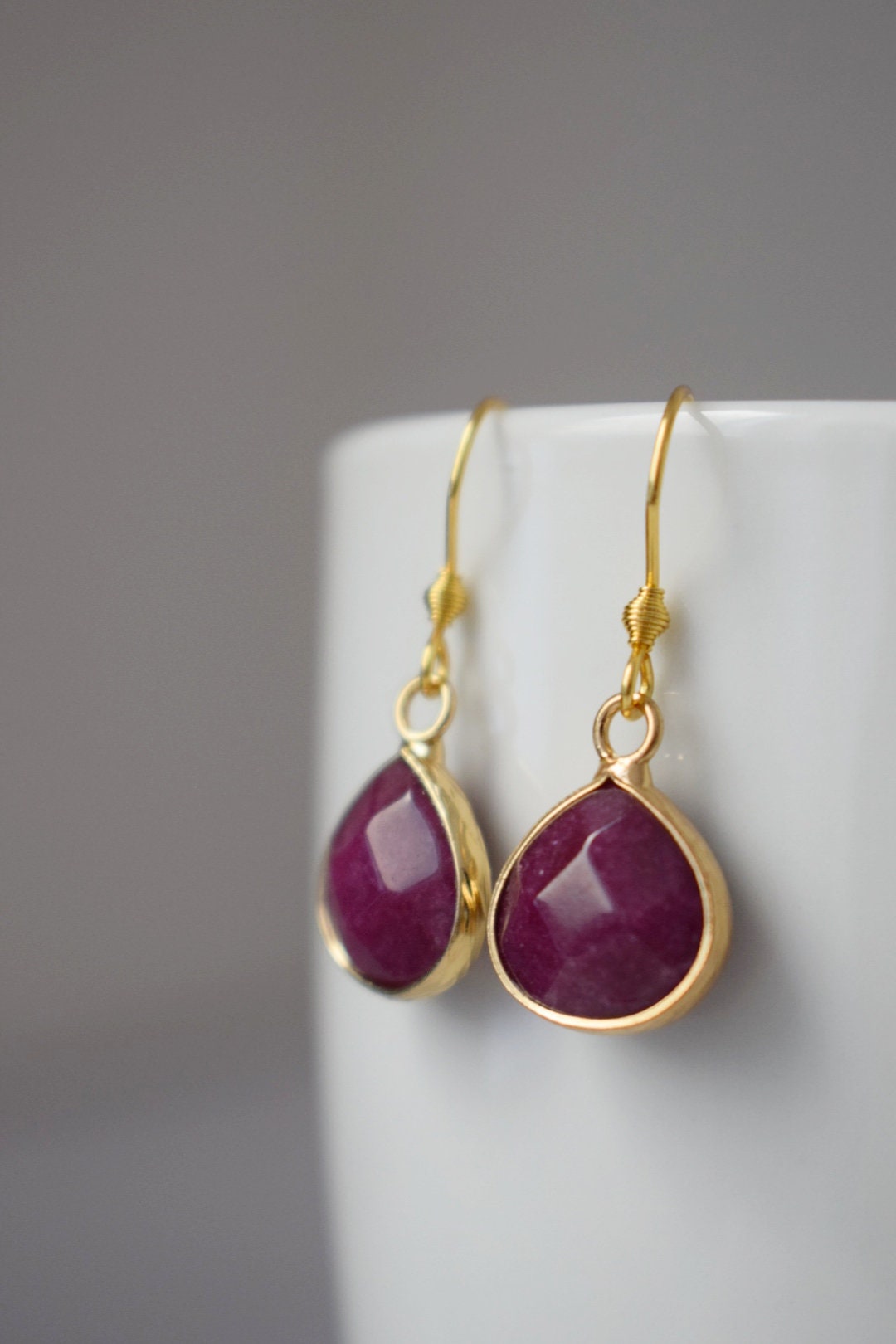 Red Jade Earrings Gold, Teardrop Wine Red Faceted Pendant, Gemstone Hanging Earrings, Dangle Drop Earrings Women, Jade Jewelry, Gift For Her