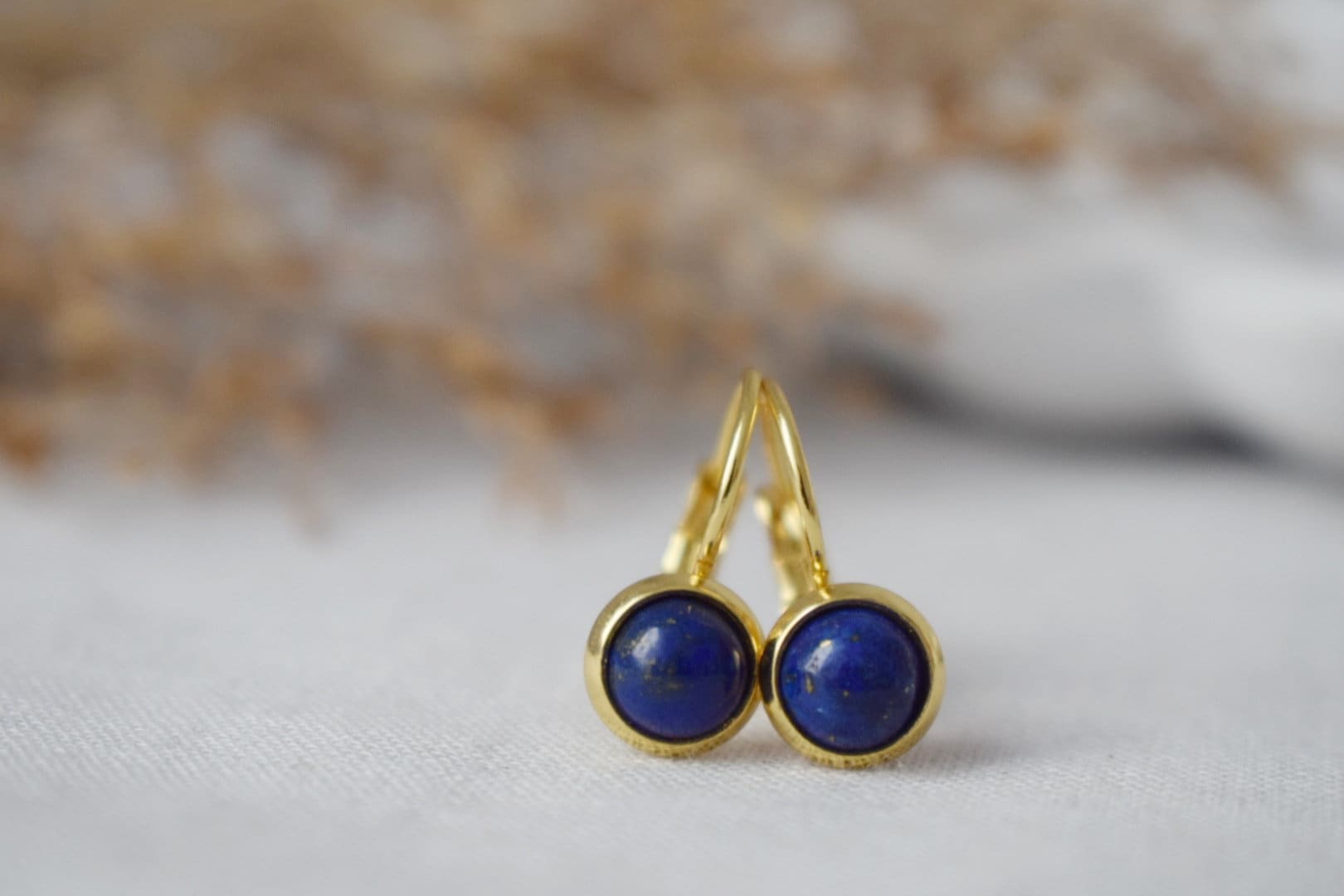 Small Blue Lapis Lazuli Ears Dangle, Minimalist, Gemstone, Lever back, Stone, Round, 6mm, September Birthstone Jewelry, Gift her