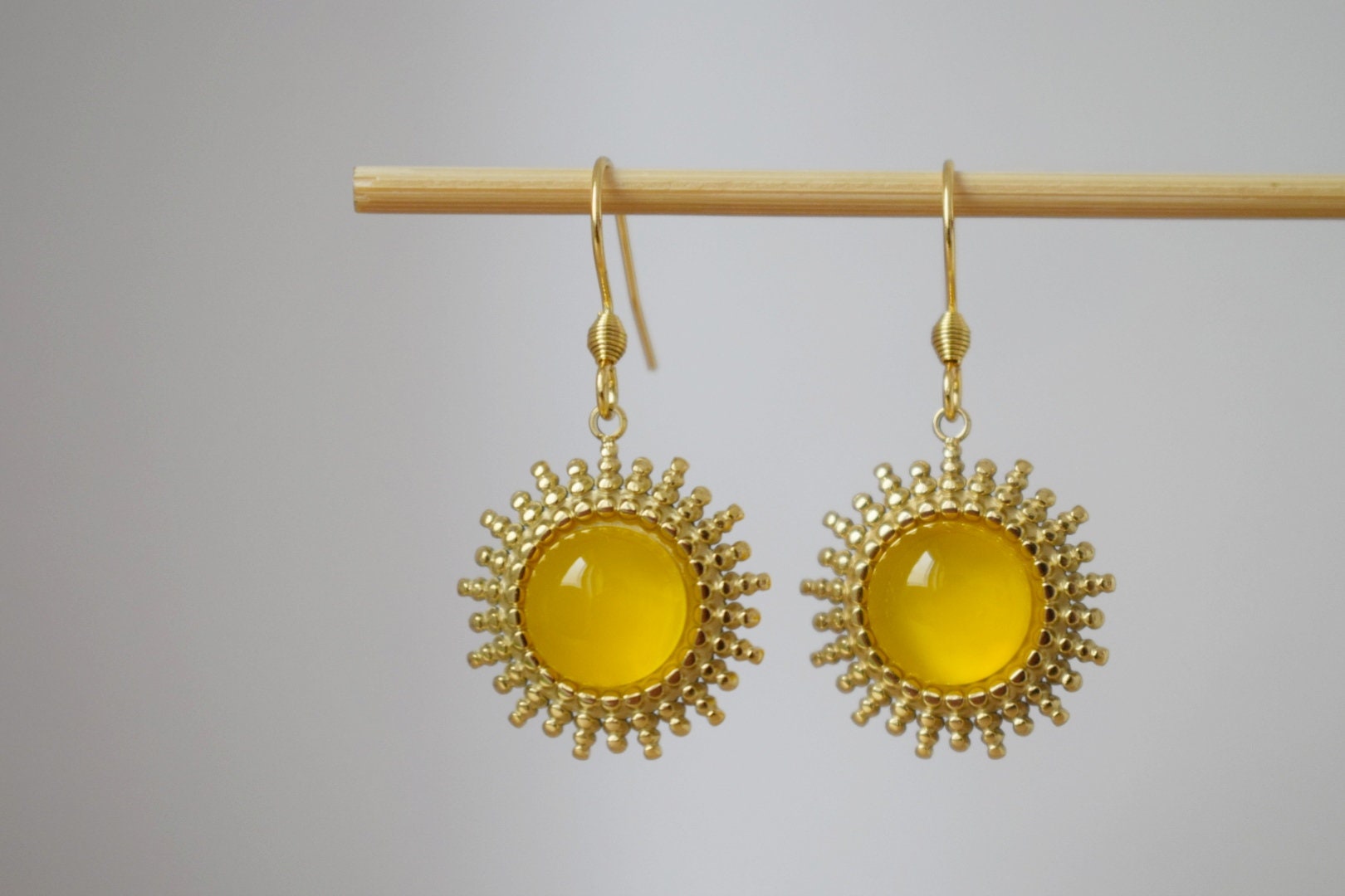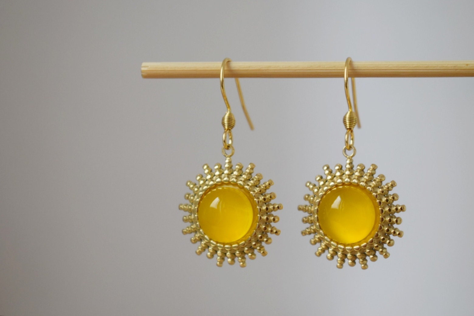 Sun earrings gold, Yellow agate earrings, Sun rays earrings, Sunburst, Gemstone earrings, Celestial, Glowing jewelry, Gift for her
