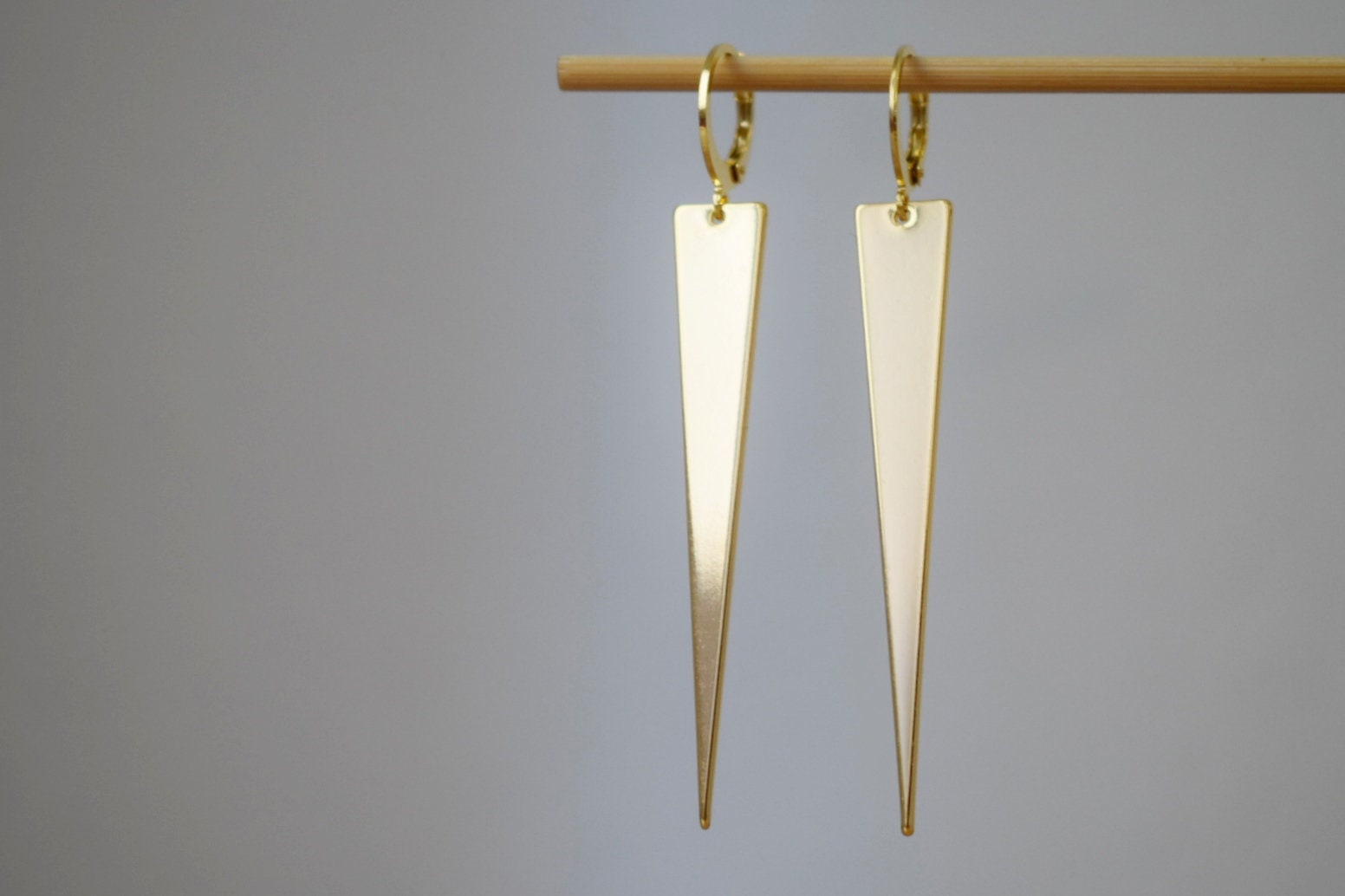Triangle pendant earrings, Huggie hoops, Long geometric hanging dangle and drop earrings, 24k vergoldete stainless steel hoop earrings